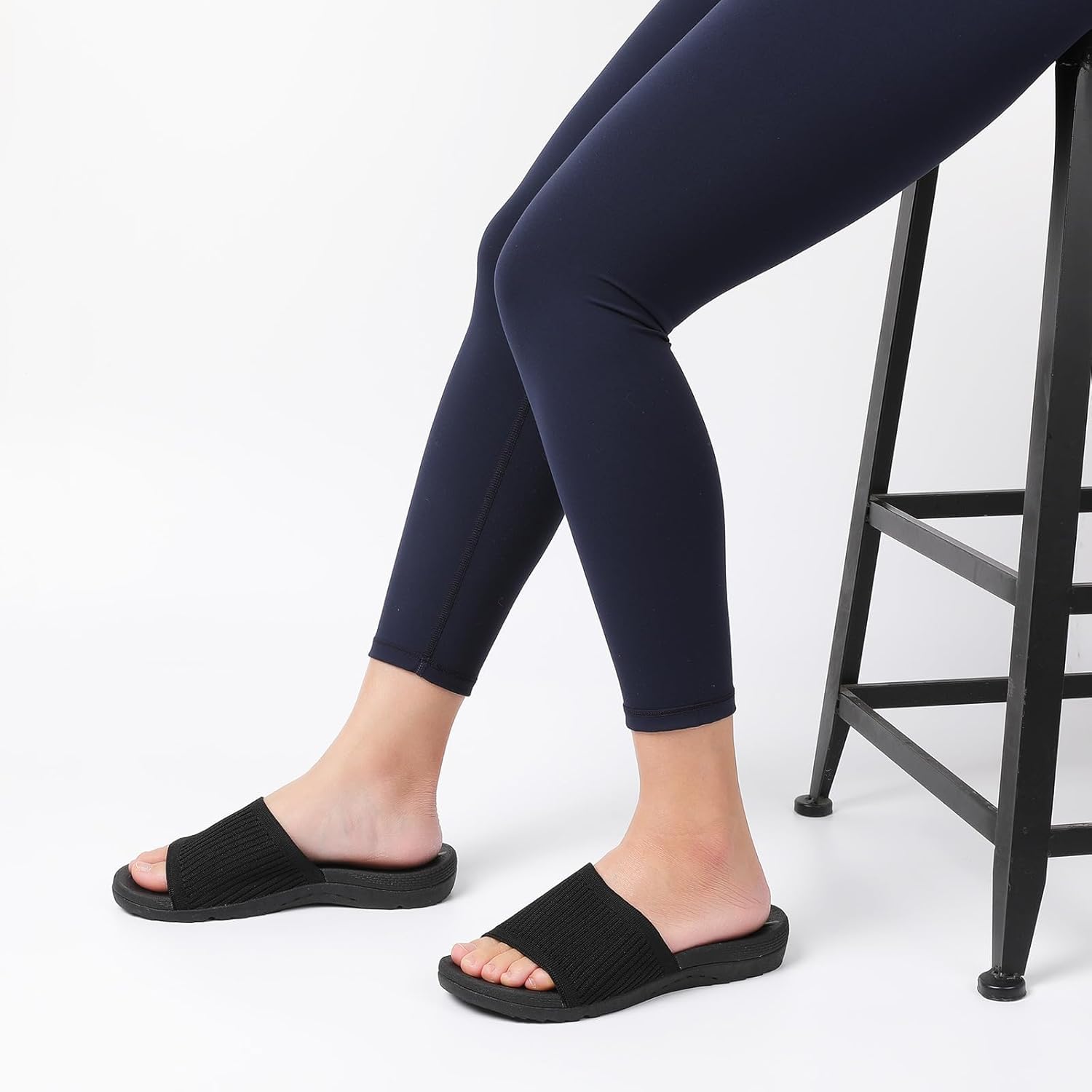 Womens Slip On Knit Sandals with Plantar Fasciitis Arch Support Ladies Yoga Mat Thick Cushion Slippers Slides for Indoor Outdoor