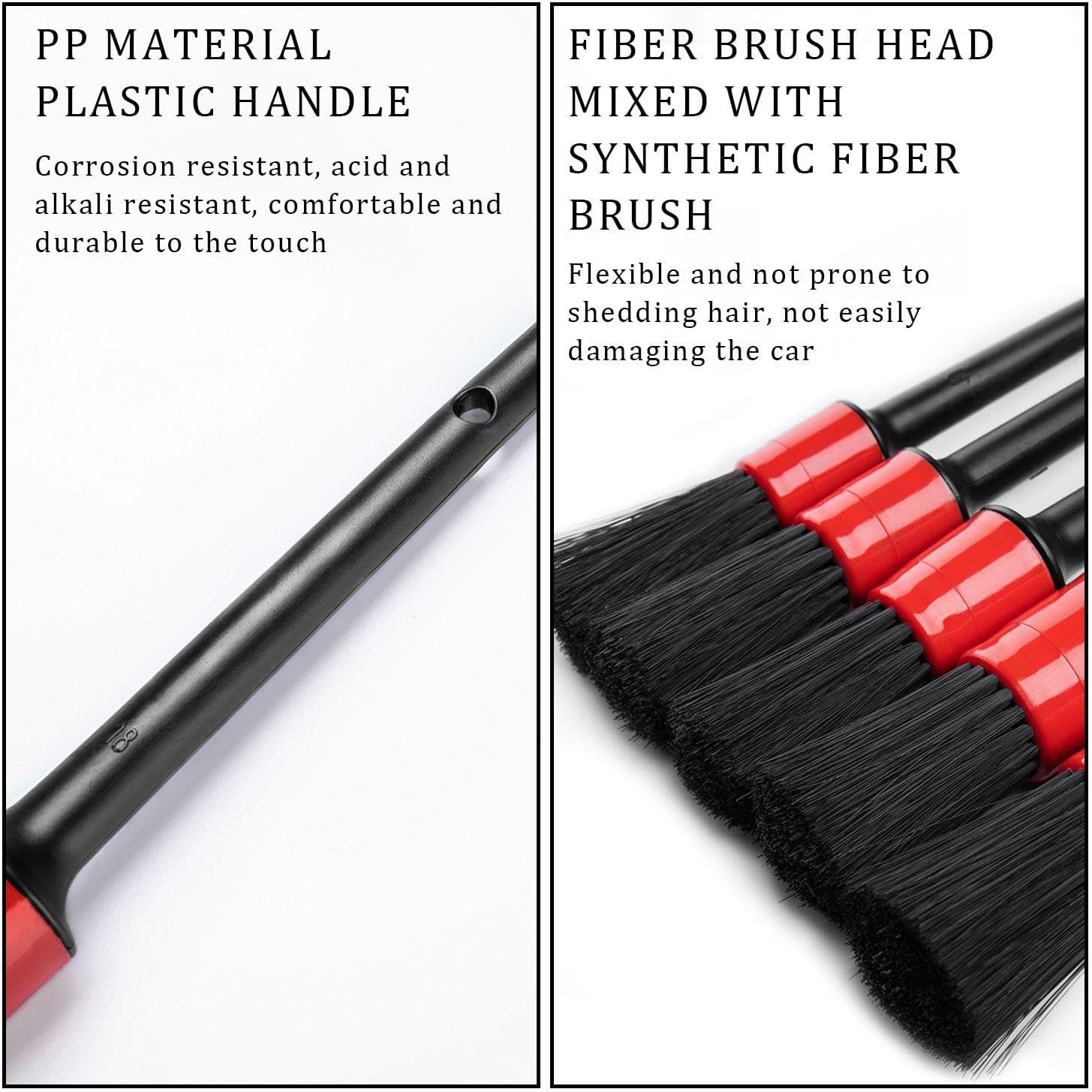 【Product Material】This product is made of PP and nylon, which is durable and not easy to damage. The PP material ensures a strong brush handle, the nylon bristles are soft and elastic, effectively cleaning the interior of the car without scratching the surface.