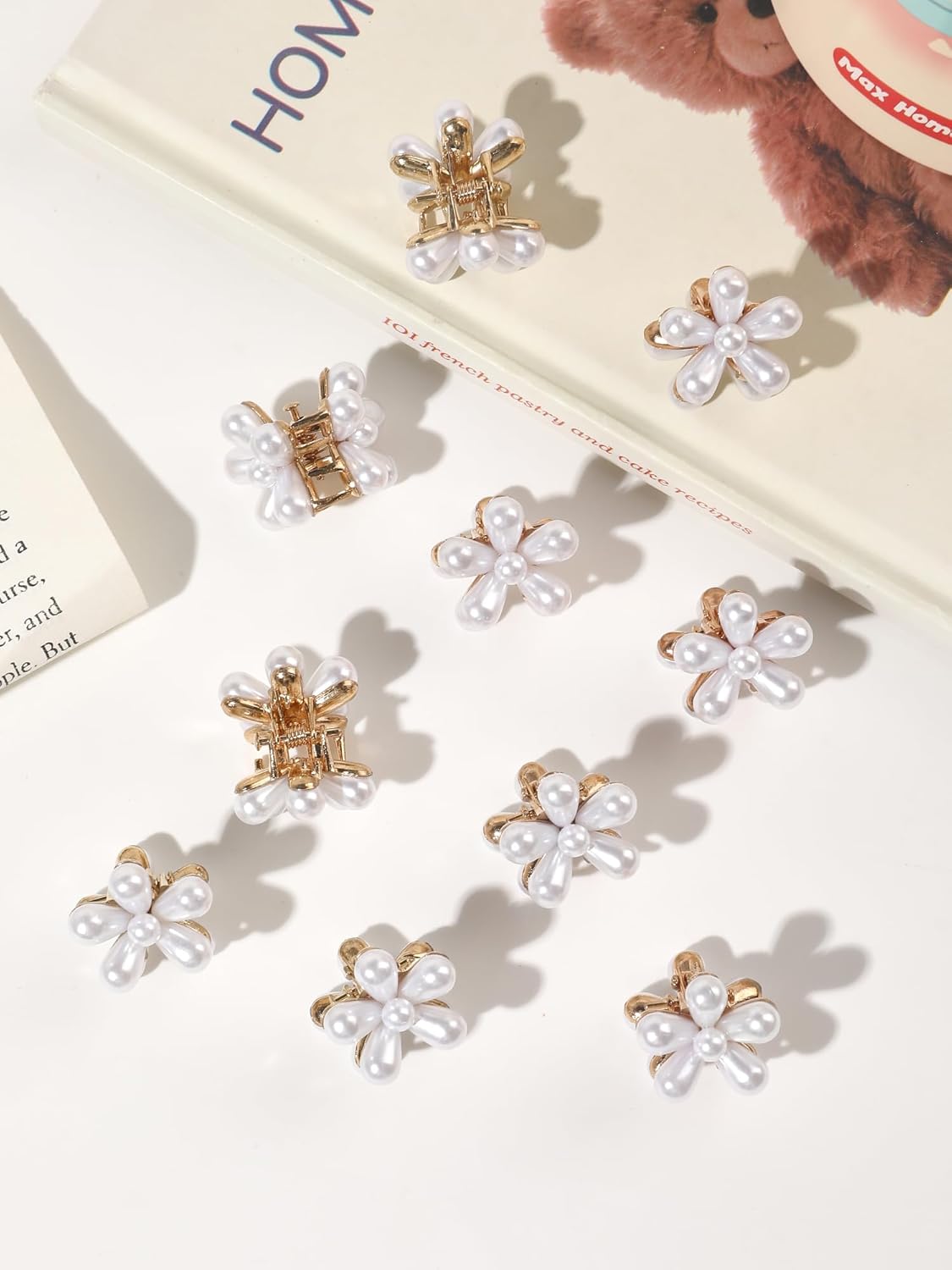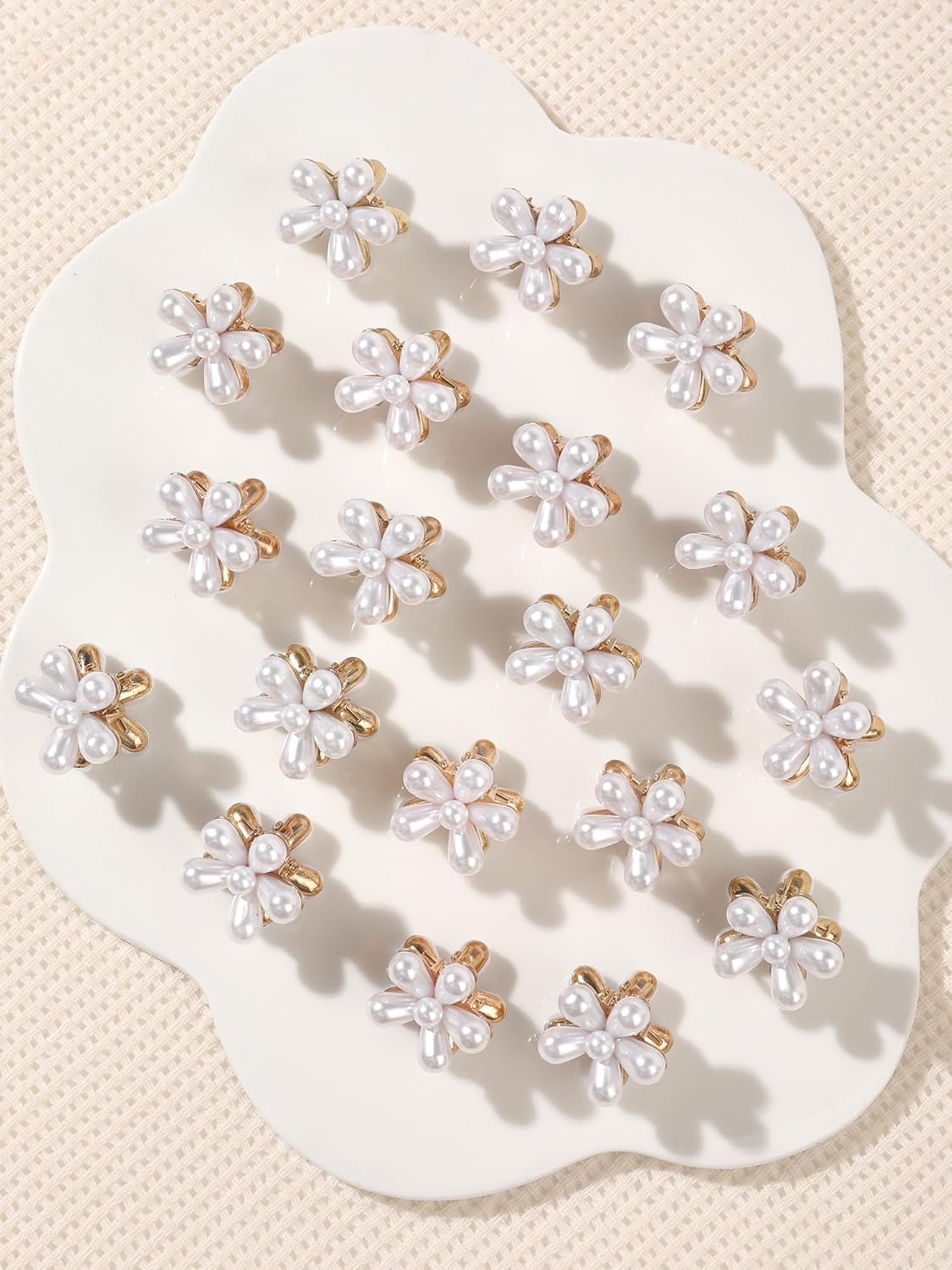 18 Pcs Pearl Flower Claw Clips for Women – Sweet Small Hair Clips Jaw Clamps for Thick Thin Medium Fine Hair,Petal Hair Cute Floral Fashion Hair Accessories