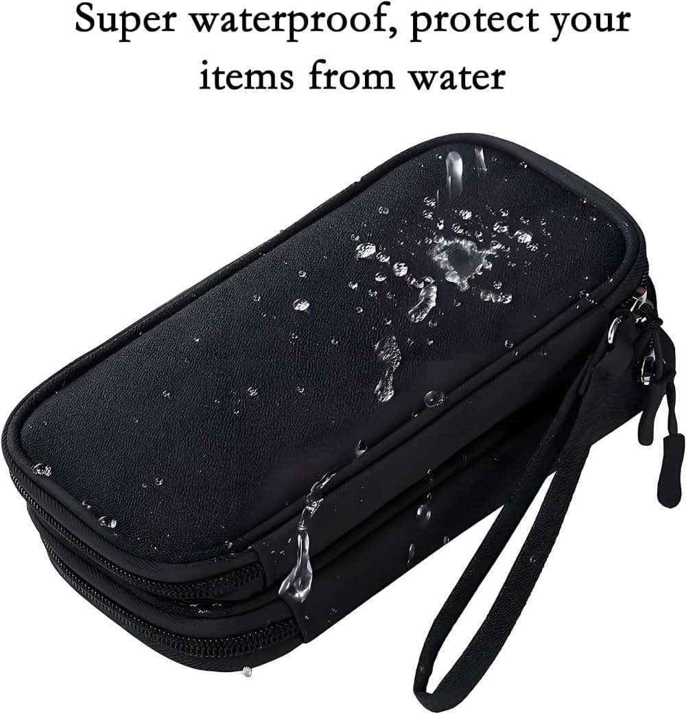 Double Layers Design: The electronics storage bag has 2 layers interior compartment with enough space to take in your cords, cables, USB drive, cellphone, charger, mouse, flash drive, and other accessories.