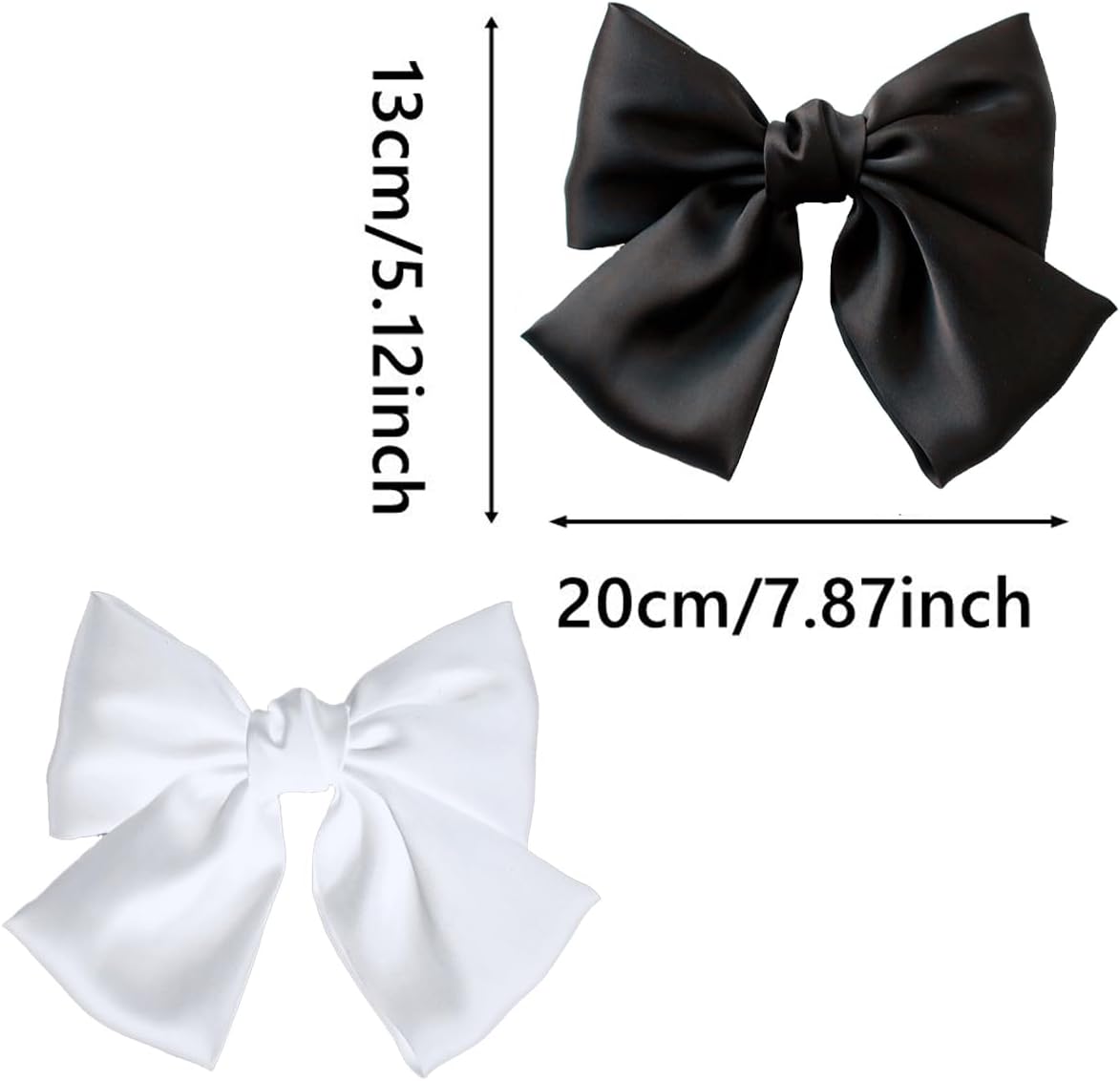 2 Pieces Silky Satin Hair Slides with Metal Clips Ribbon Barrettes Large Hair Bows Hair Accessories for Women and Girls