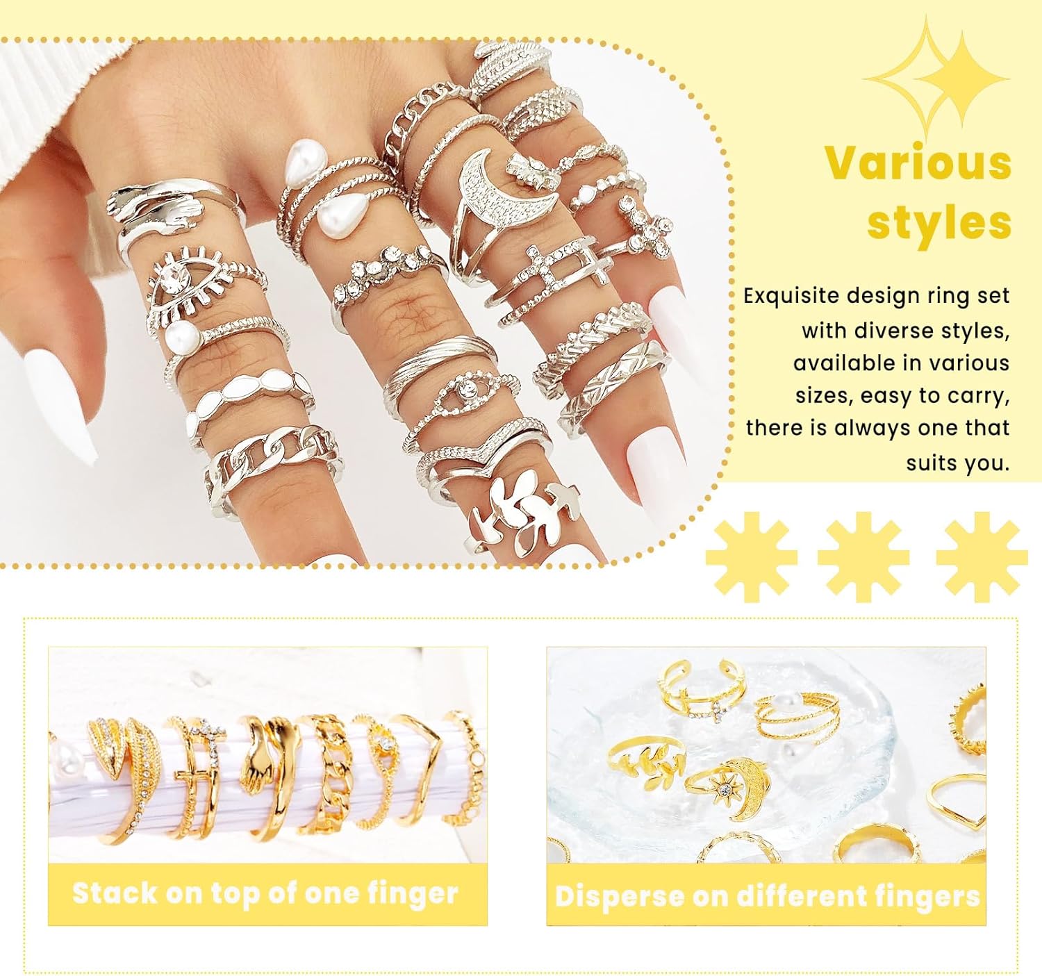 23pcs/set Fashionable Ring Set,Geometric Style And Bohemian Element Accent,Suitable For All Kinds Of Wear Embellishment Accessories