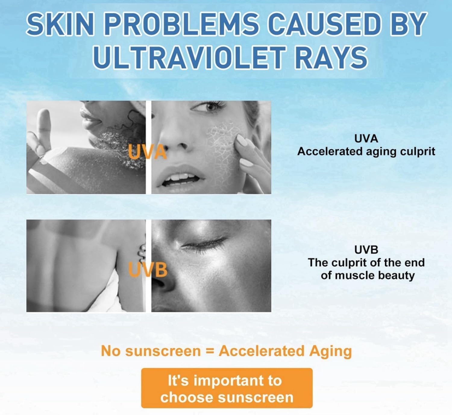 Fights UVA/UVB Rays: Offers broad-spectrum protection to shield against both UVA and UVB rays, preventing sunburn, tanning, and photoaging