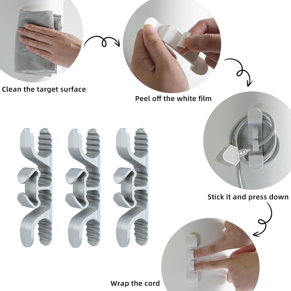 3PCS Cord Organizer for Appliances, Upgraded Kitchen Appliance Cord Wrap, Cord Holder Stick on Pressure Cooker, Coffee Maker, Air Fryer and Blender (Grey)