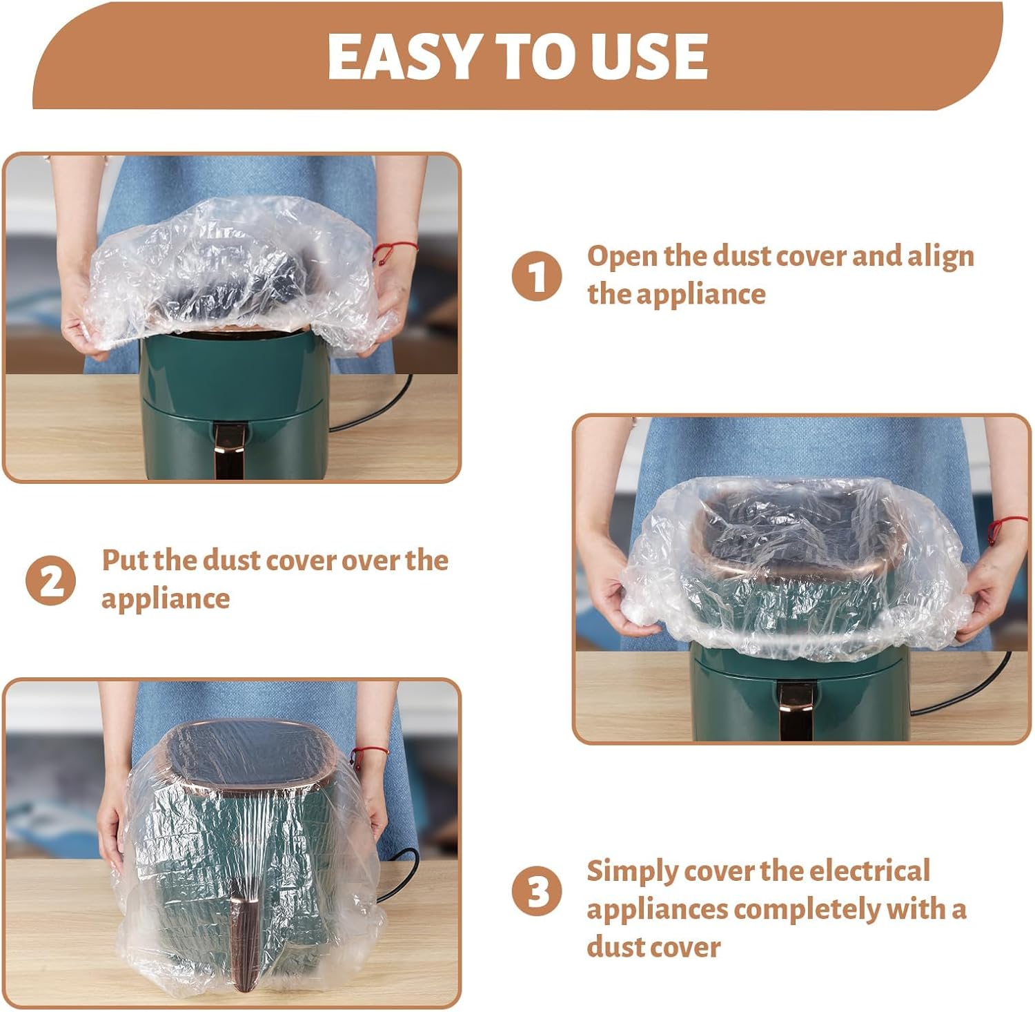 Our high-quality, see-through PE dust covers allow you to easily identify your kitchen appliances while keeping them protected from dust and dirt. This clear design saves you time and effort, making it perfect for various appliances.
