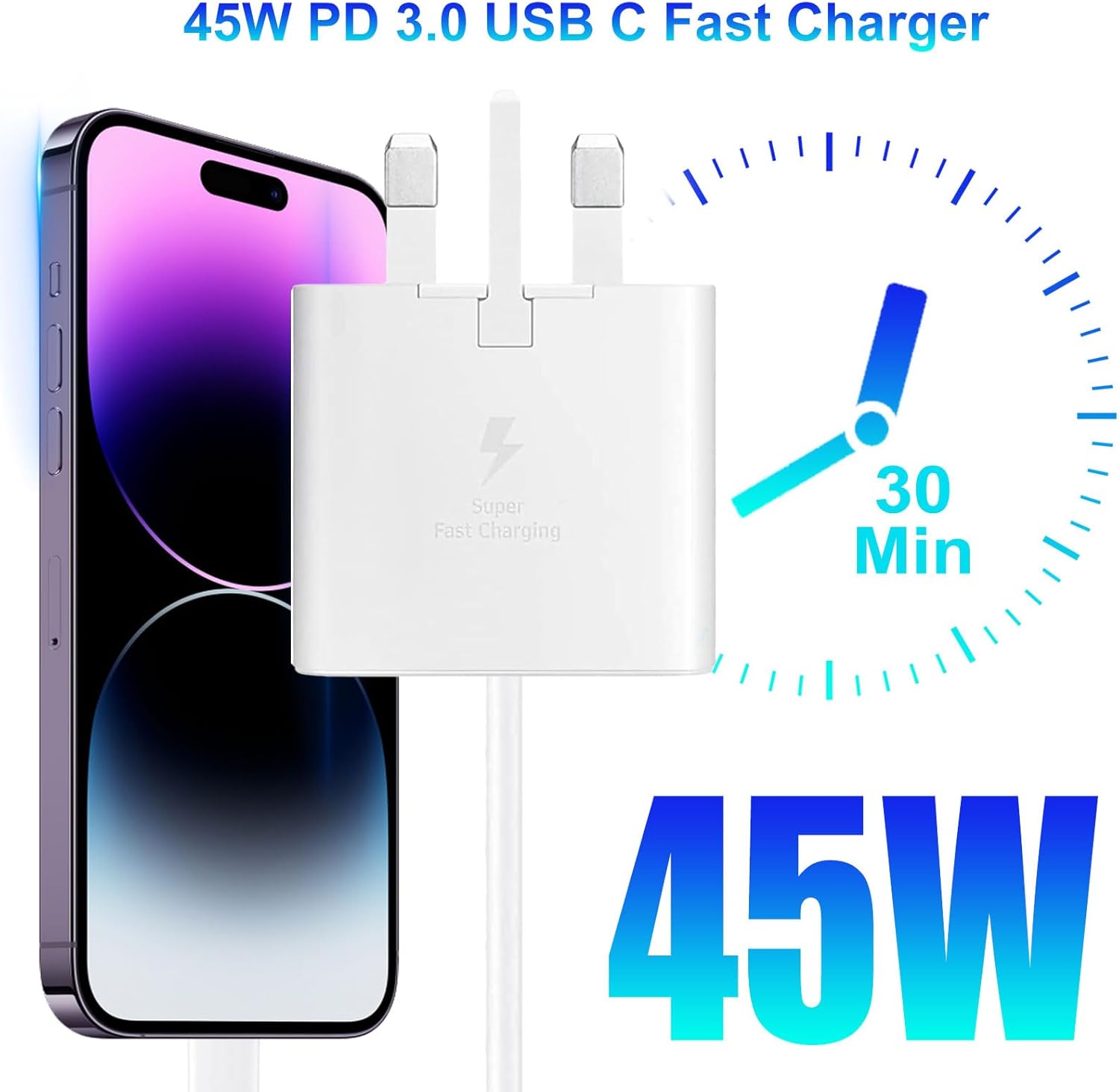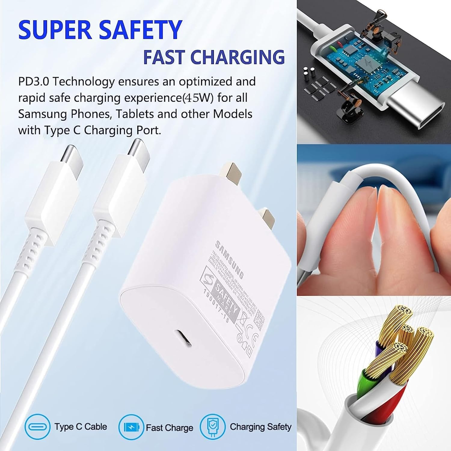 【Compatible Models】 USB C plug fast charge supports programmable power supply (PPS), super fast charging 3.0 maximum 45W compatible with Samsung Galaxy S23 Ultra/S23/S23+/S22+/S22 Ultra/S21/S21+/S21 Ultra/S20/S20+/S20 FE/S20 Ultra/Note 10+/Note10+ 5G/Galaxy Tab S8/S8+/S8 Ultra/s7/s7+/Z Flip 3 5G/Z Fold 3 5G/Note20/20 Ultra/Note10/S9 and more USB C devices.