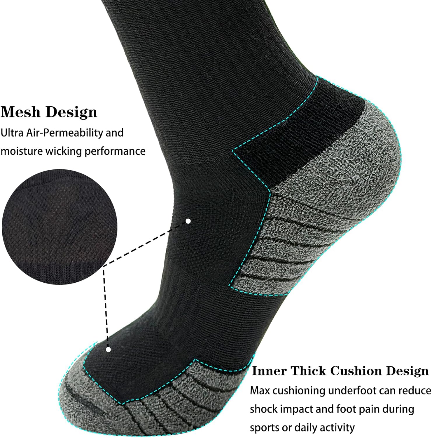 5 Pairs Cushioned Crew Cotton Socks Casual Athletic Running Hiking Sports Breathable Long Calf Socks for Men Women