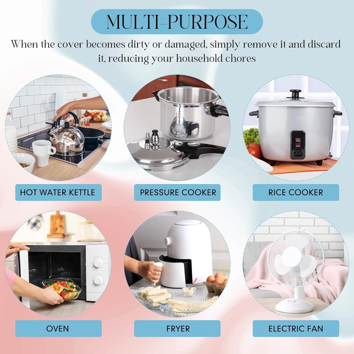 😊Versatile Usage: They are not just for kitchen appliances like ovens, pressure cookers, blenders, and air fryers, but can also be applied on fans, chairs, and even as picnic garbage bags; Keep your food items dust free during picnics and keep your appliances away from dust accumulation and scratches in one convenient product.
