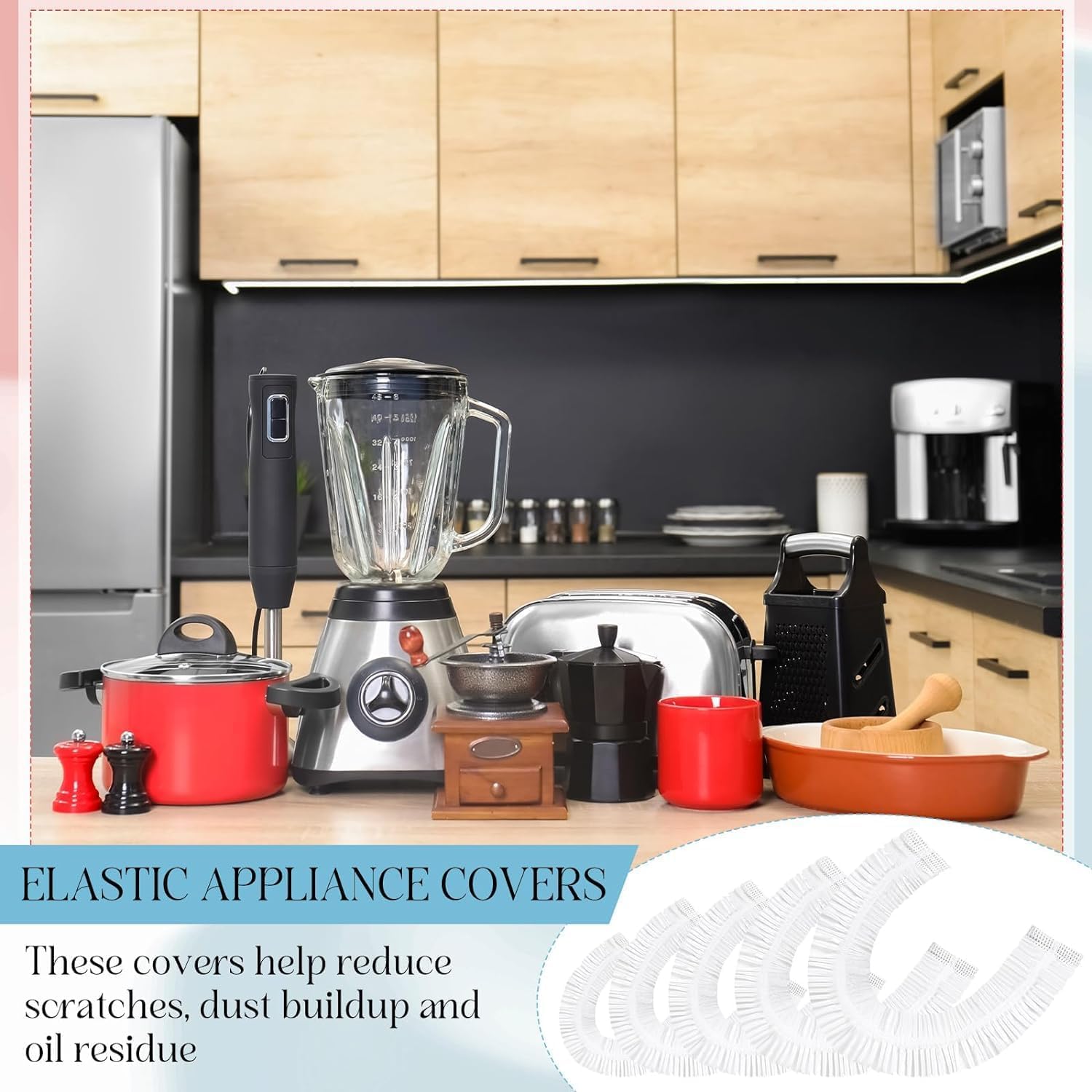 😊Easy to Use:Simply estimate the diameter of your device, pick the appropriate blender cover size, then stretch it over the appliance; The bottom elastic will automatically tighten and ensure a snug fit without any unsightly curling or risk of falling off.