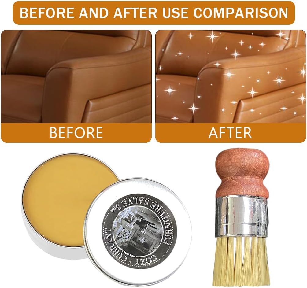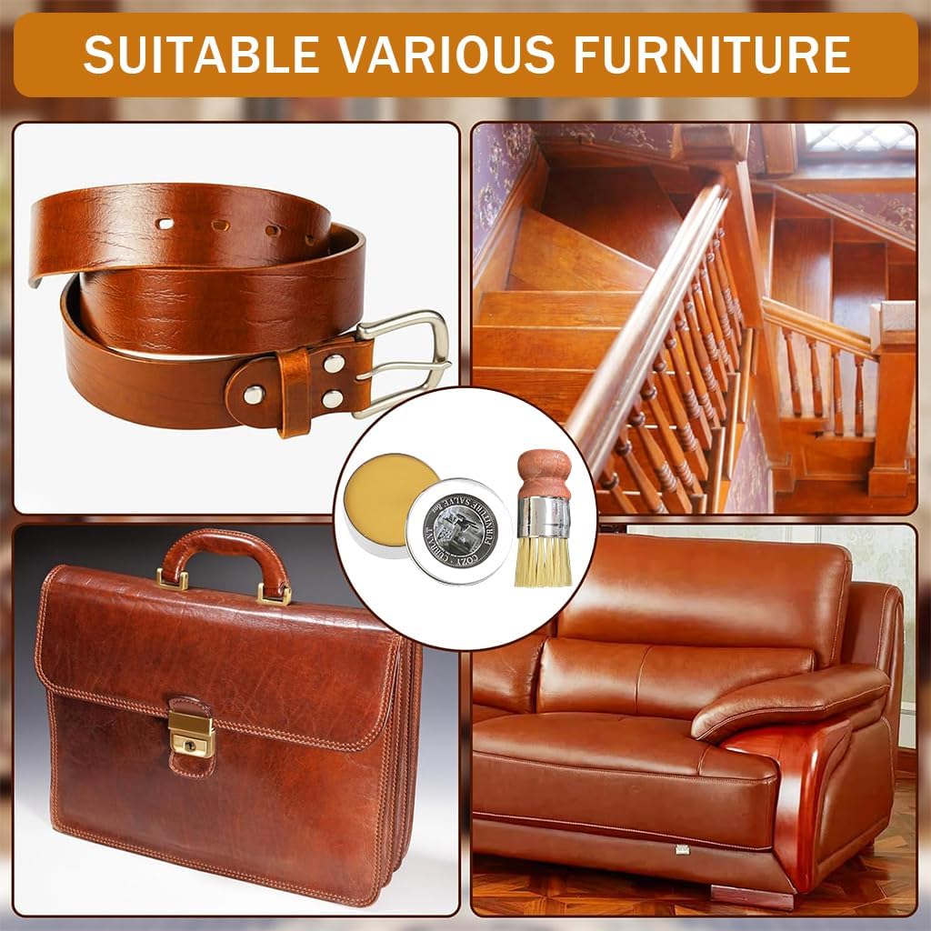60g Leather Polish Paste with Brush – Furniture Salve for Leather Care, Furniture Leather Wax, Repair Balm for Furniture, Car Interiors, Jackets, Shoes, Bags