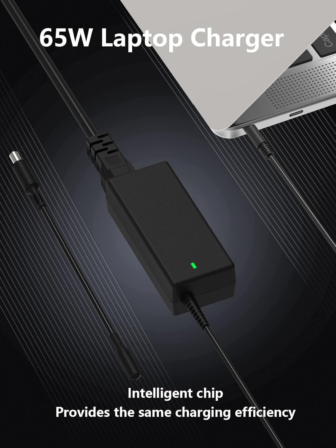 Package: 1 * 65W Laptop Charger Compatible with Dell, 1 * AC Power Cord, 1* 4.5mm x 3.0mm to 7.4mm x 5.0mm Converter Cable