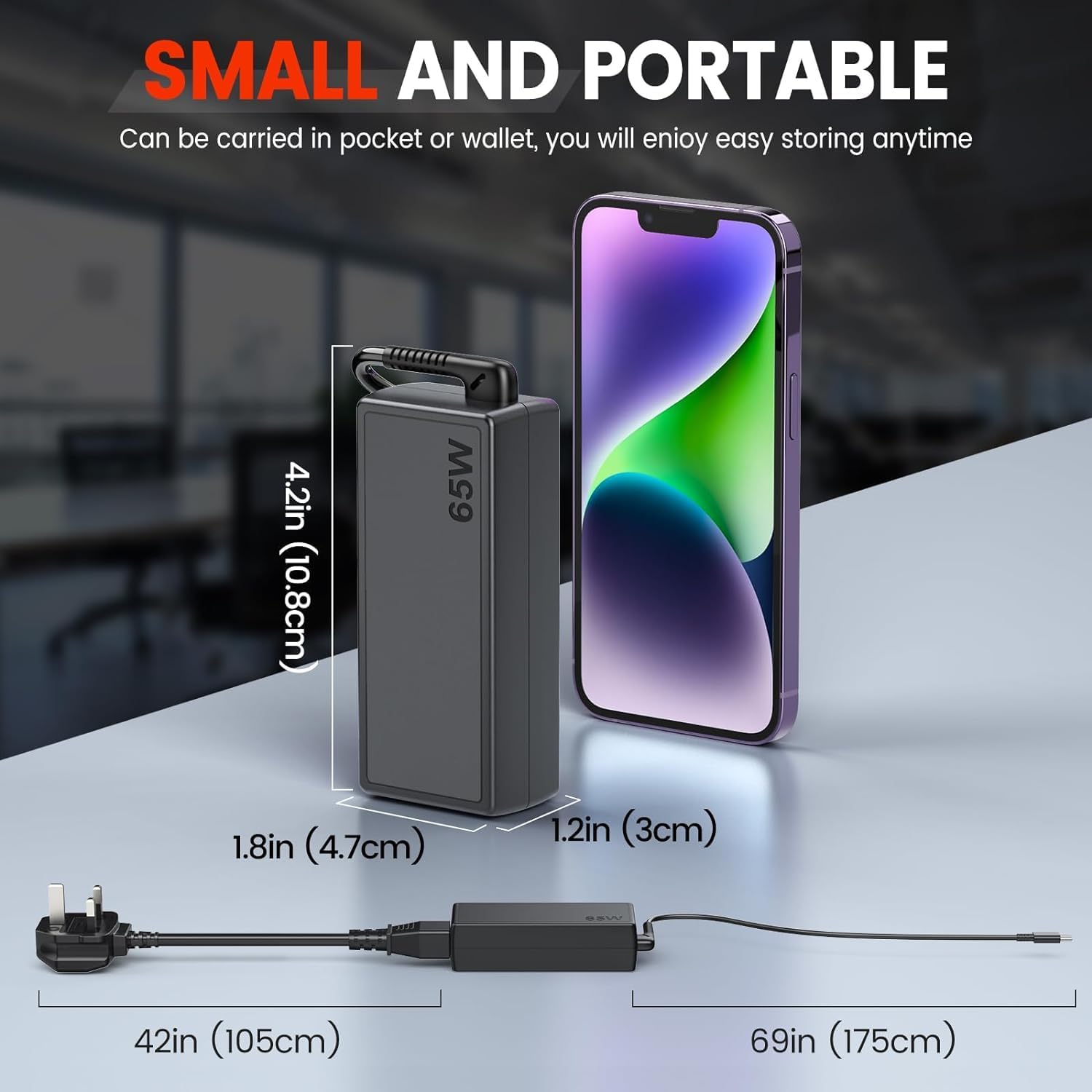 Power Specs – UK Plug; Input: 100-240V~1.6A 50-60Hz Output: 5V-3A or 9V-3A or 15V-3A or 20V-3.25A Watts: 65 Watts. (For Worldwide Use) for Original authentic Lenovo Laptop Charger Laptop AC Adapter Power supply. Our charger also could be compatible with Apple 30W/61W USB-C Notebook. Fit for HP 45w 65w type C laptop like: Pavilion, Envy , Spectre, Chromebook. Fit for Dell 45w 65w for Asus Samsung Google with USB C laptop.Certificated with UL/CE/FCC/RoHS standards.