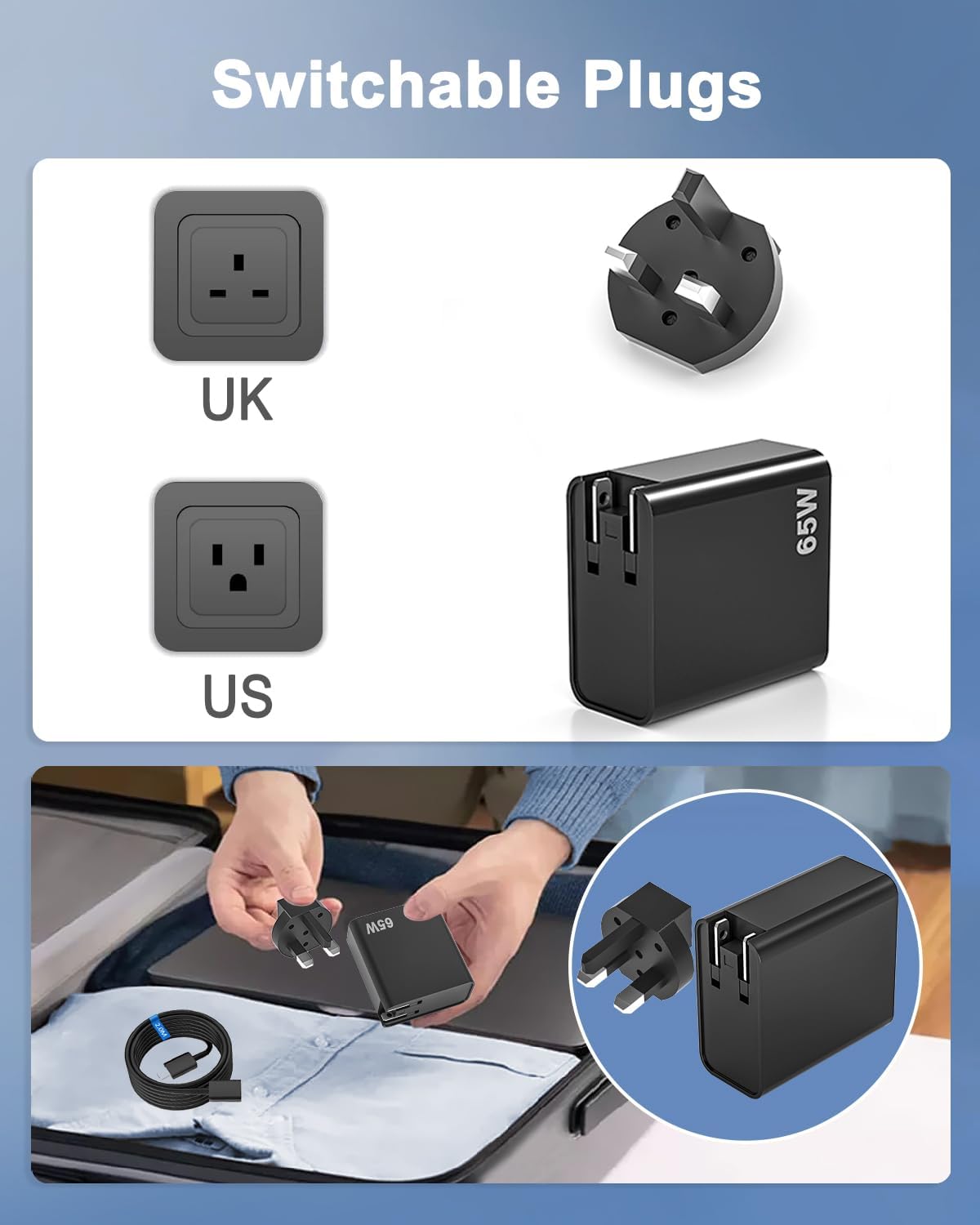 🔋【What’s Included】: Your purchase includes NATNO 65W 3-Port USB C Charger Block,a 65W USB Double Type-C Port Charger Cable,a interchangeable UK/US Plug,and a user manual,so you have everything you need to get started right away.