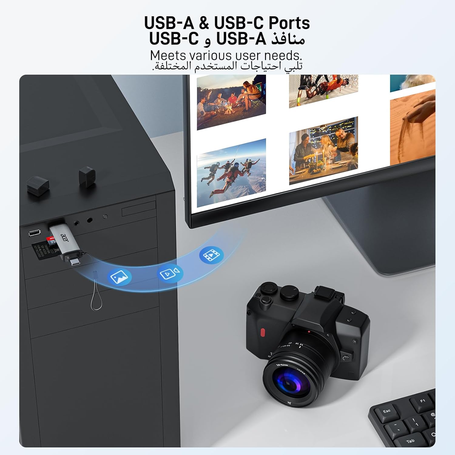 Simultaneous Dual-Card Access – Read and write on two cards at once, eliminating constant swapping. Ideal for fast photo downloads, seamless video editing, and 3D printer file transfers. Effortlessly review security camera or car monitor recordings