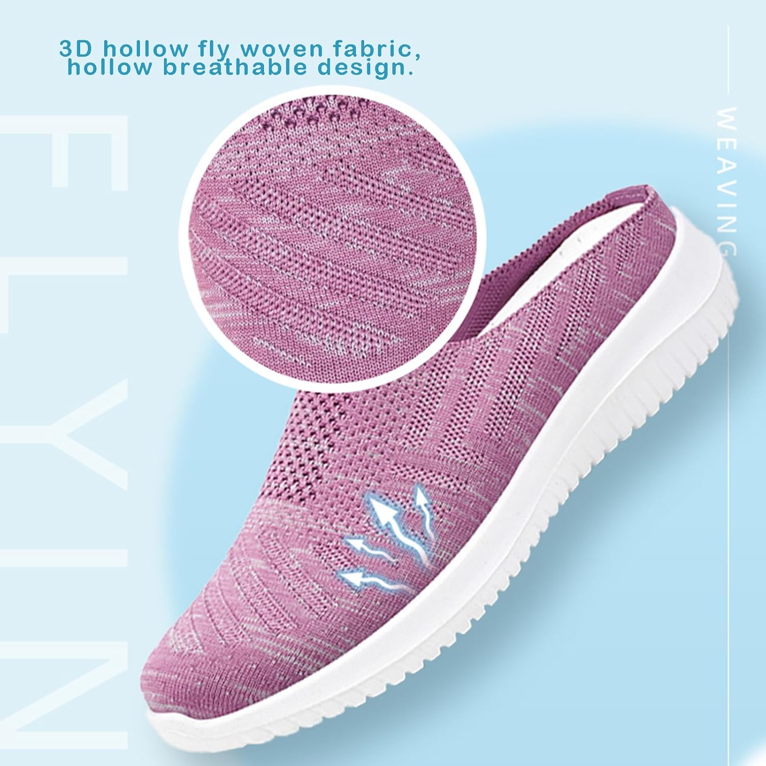 Upper Material: Knitted MeshOutsole: PVC OutsoleInsole: Hollow Breathable InsoleColors: Gray, Purple, BlackSizes: 35-40