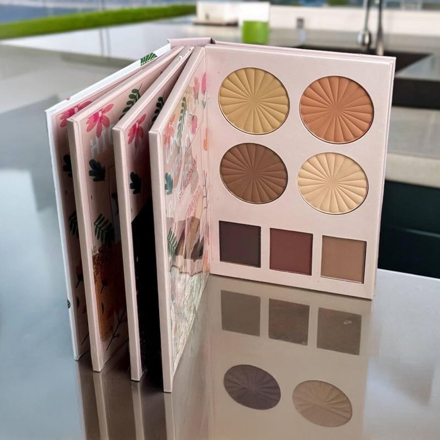 4-in-1 Makeup Book: Includes everything you need – Layer 1: Eyeshadow, Layer 2: Highlighter, Layer 3: Blusher, Layer 4: Concealer with Eyebrow Powder – all in one stylish, compact palette.