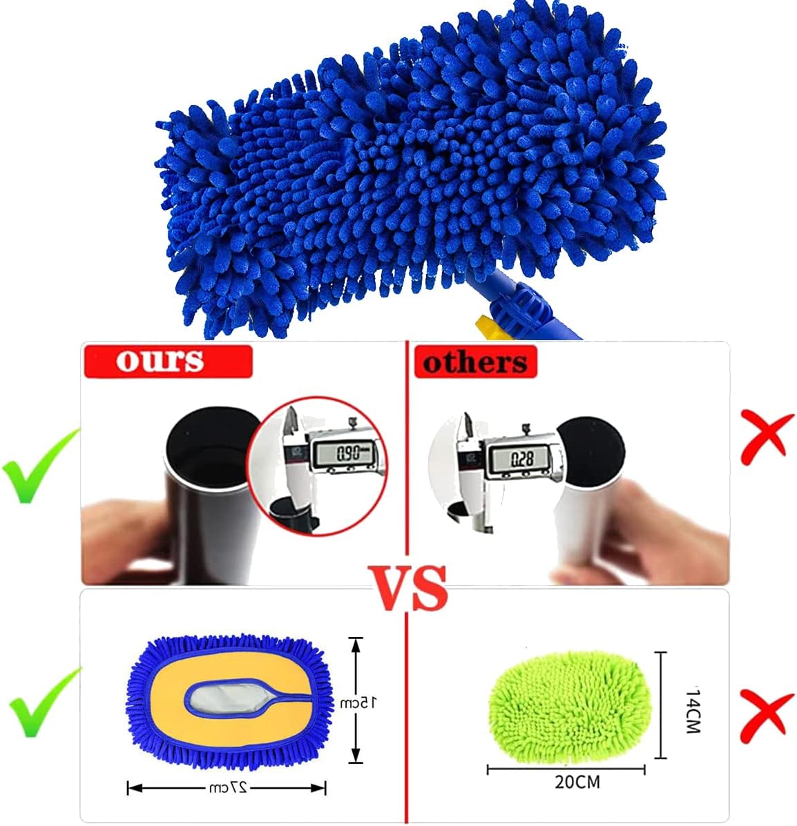 1. High density microfiber chenille, fluffy bristles, no lint. Soft,lint-free and swirl-free,safe on paint and other delicate surfaces, which help protect the car.