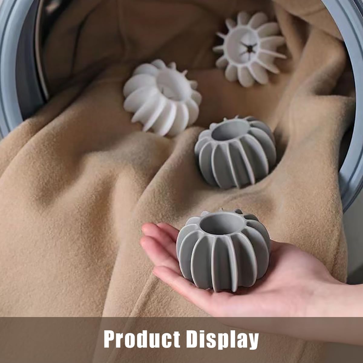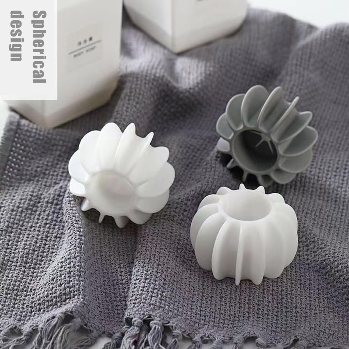 Packaging: You’ll receive a set of 6 large laundry balls in gray and white, designed for washing machines to help eliminate wrinkles, twists and knots.