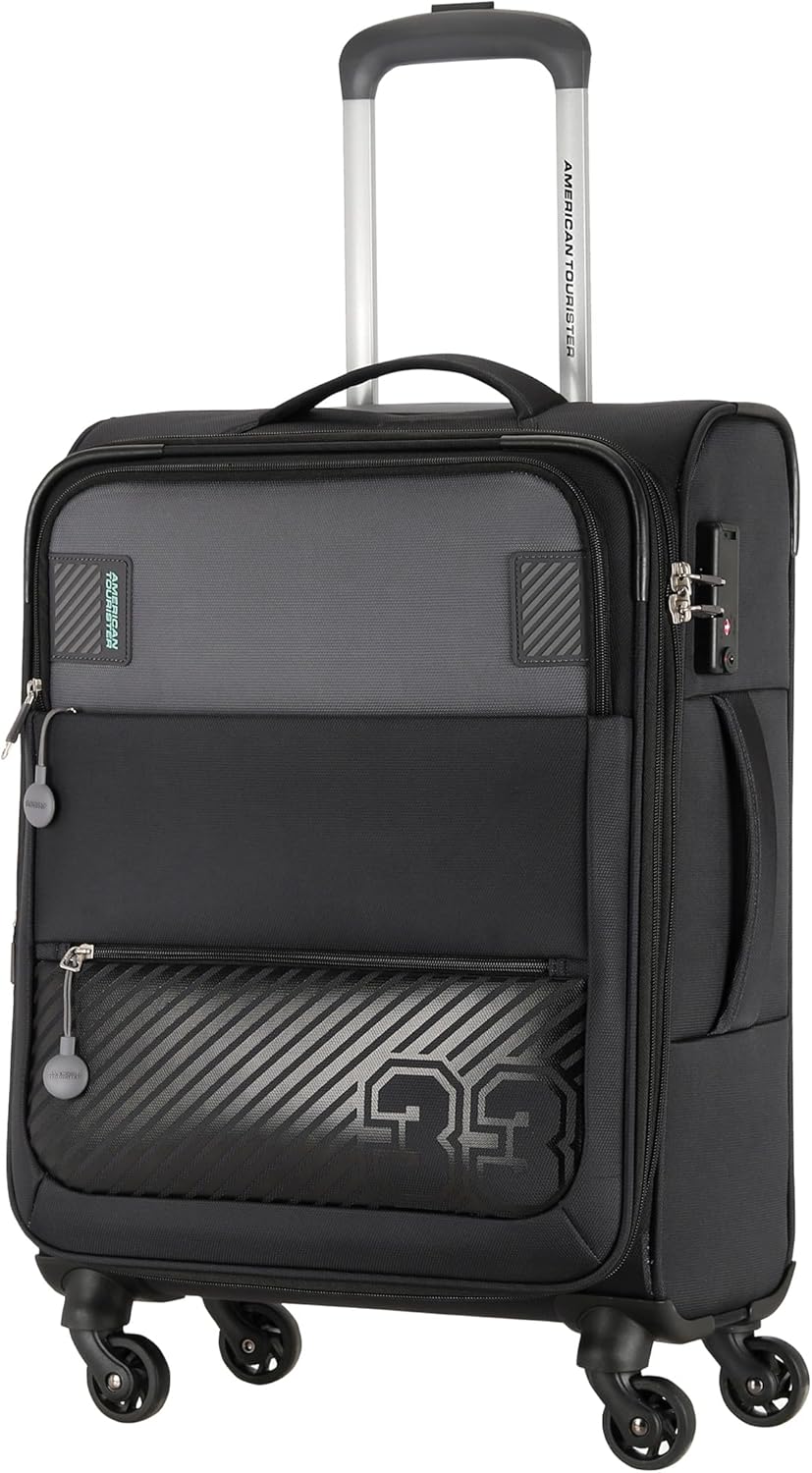American Tourister MAJORIS spinner has smooth 4 wheels, coupled with spacious compartments with attached wet pockets and organized multi-interior pockets sporting a stylish adjustable trolley handle. The luggage happens to be water resistant and absorbs impact under stress, providing durability and flexibility.