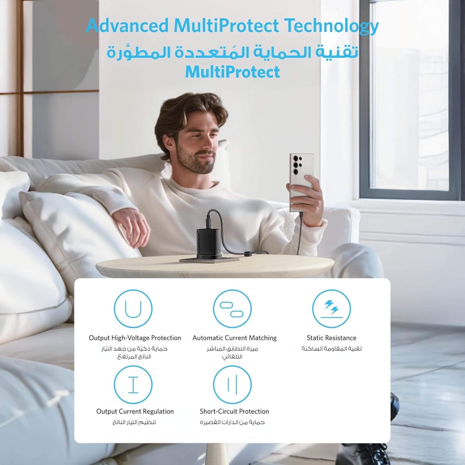 Secure Charging with MultiProtect: Equipped with MultiProtect technology, ensuring comprehensive safety with features like high-voltage and short-circuit protection.