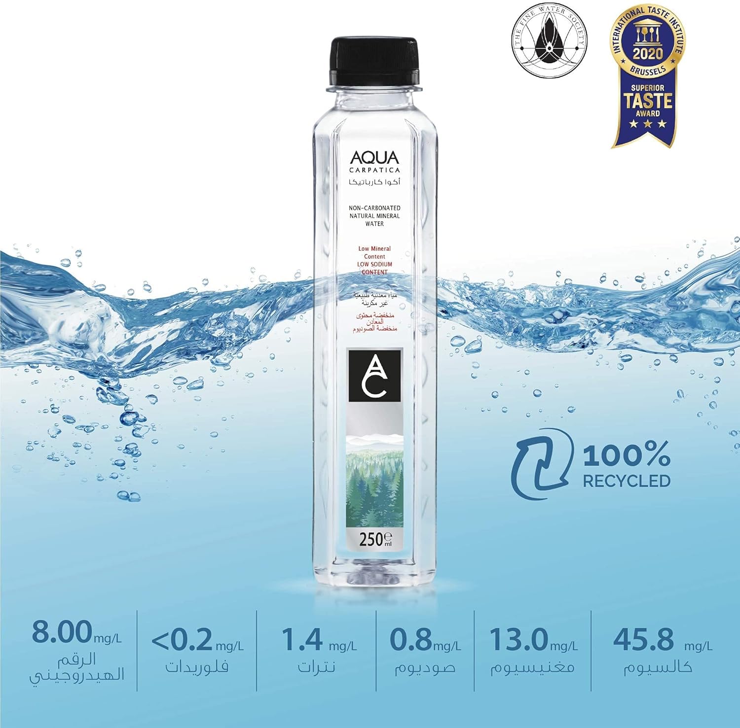 About The Product: Natural Mineral Water (Still). Bottled at source: AQUA Carpatica Bajenaru Spring, Vatra Dornei. Virtually nitrate free (only 1.4 mg/l) (as NO3-N per serving) – ideal for newborns (no boiling required), young children and expectant mothers. Naturally very low in sodium (only 0.8 mg/l) – recommended for those with high blood pressure or low sodium diets. Naturally Alkaline: pH 8.00. Low mineral content – great for use in baby formula, for infants, and everyday hydration. Natural Electrolytes – improve hydration. Smooth, clean taste, no aftertaste. Protected Springs. BPA free bottles, 100% recyclable.