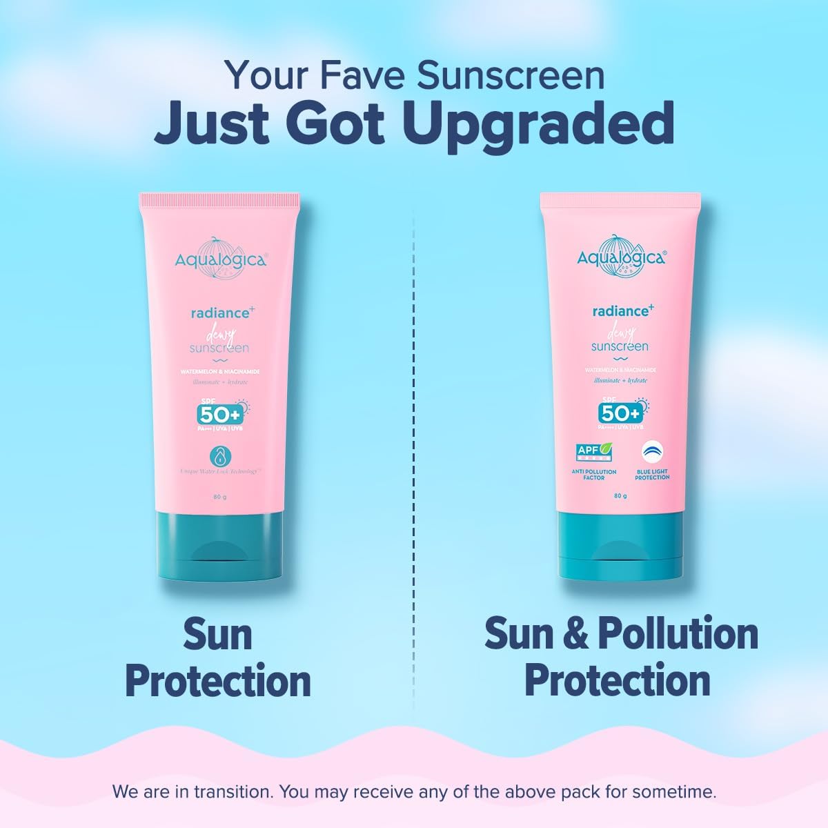 Aqualogica Radiance+ Dewy Sunscreen For All Skin Types With Watermelon & Niacinamide With Spf 50 & Pa+++ – 80G, Pack Of 1