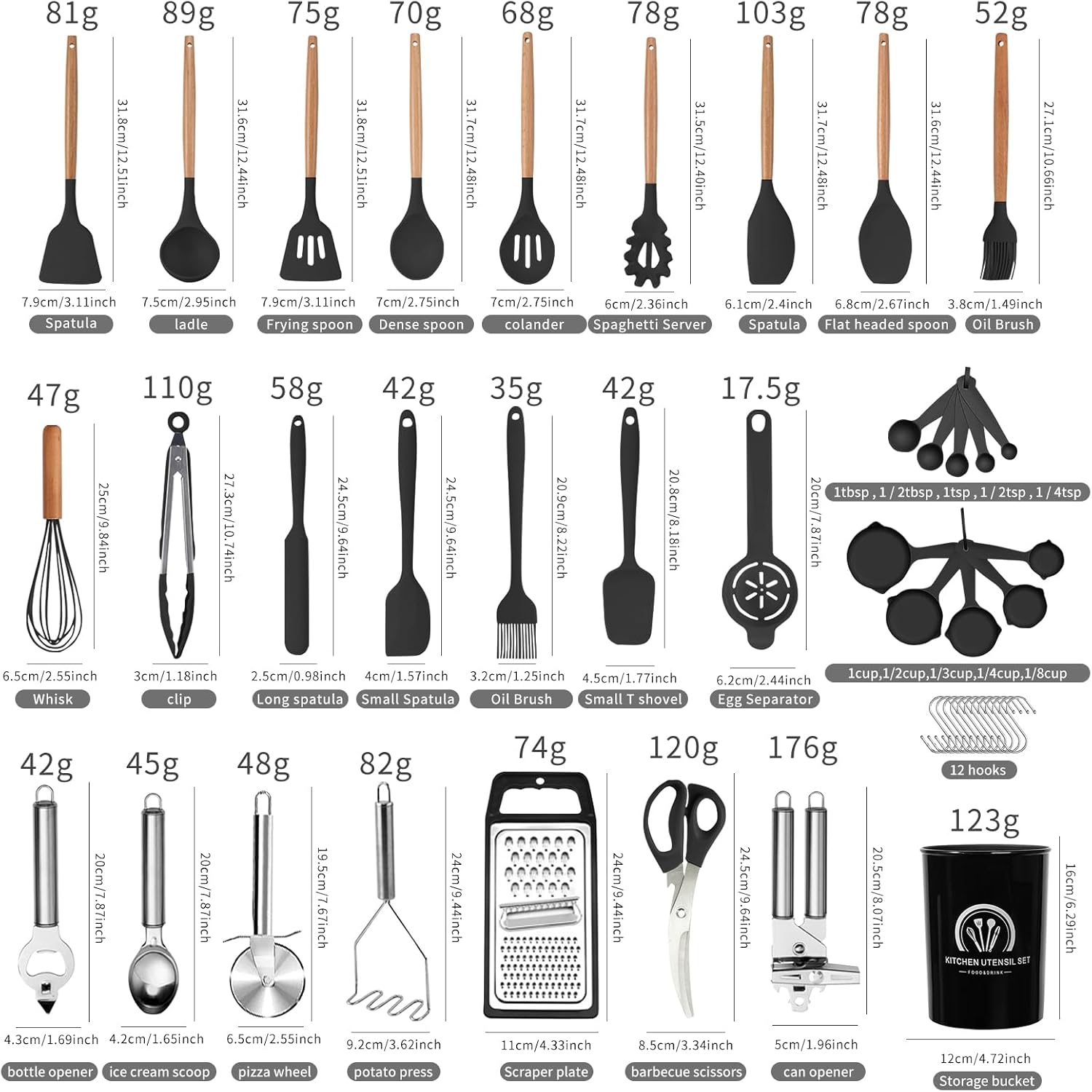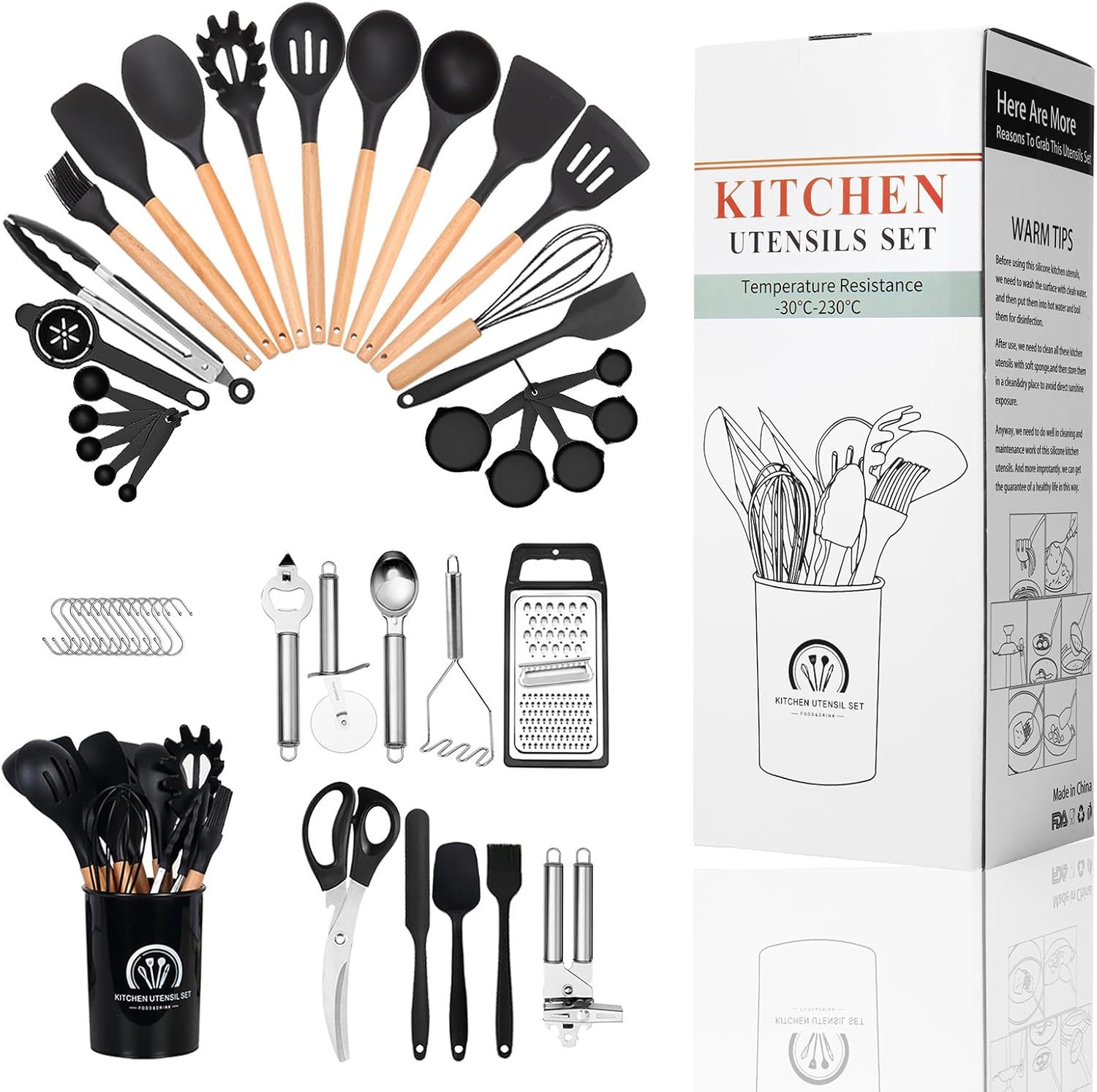 š„ćBest Kitchen Tools and Gift SelectionćOne- Piece Stainless Steel Core to Enhance Durability and Toughness to Keep the Spatulas from Bending or Deformation. 34 Different Shape for its Unique Function would be your Great Kitchen Helper! A Small Holes on the Handles for Easy Storage. Extra 12PCs Hooks and Utensils Holder for Convenient Storage. An Excellent Gift for Anyone who Loves to Cook, also a Good Gift Set for Housewarming, Wedding Registration and New Year Gifts!