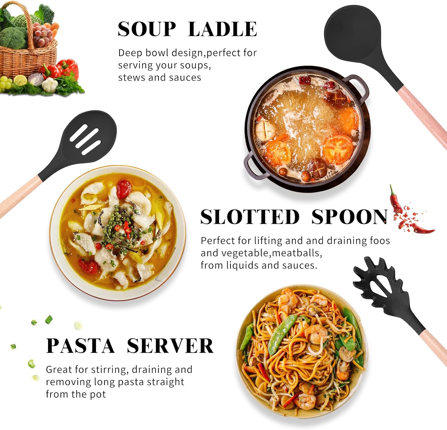 š„ćUpgraded 46PCs Kitchen Utensils Setć Anti Scalding Protect your Hand from Burning, 46 Professional Silicon Kitchen Utensil Set Includes Flexible Spatula, Soup Ladle,Serving Spoons Pasta Server, Spatula Turner,Tongs,Egg Speparator,Pizza Wheel,Bottle Opener,Potato Press,Scraper Plate,12 Hooks and so on. Meet Your All Kinds of Kitchen Needs.