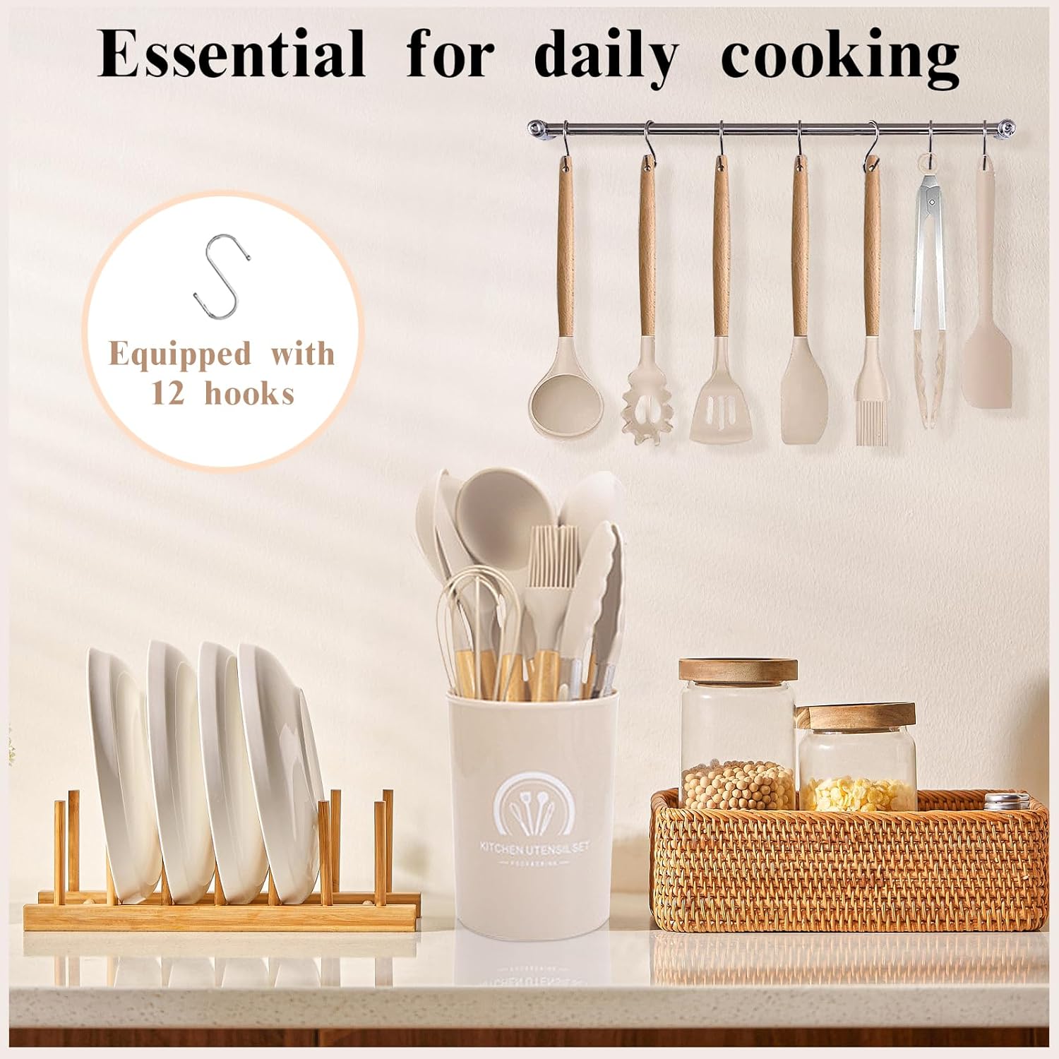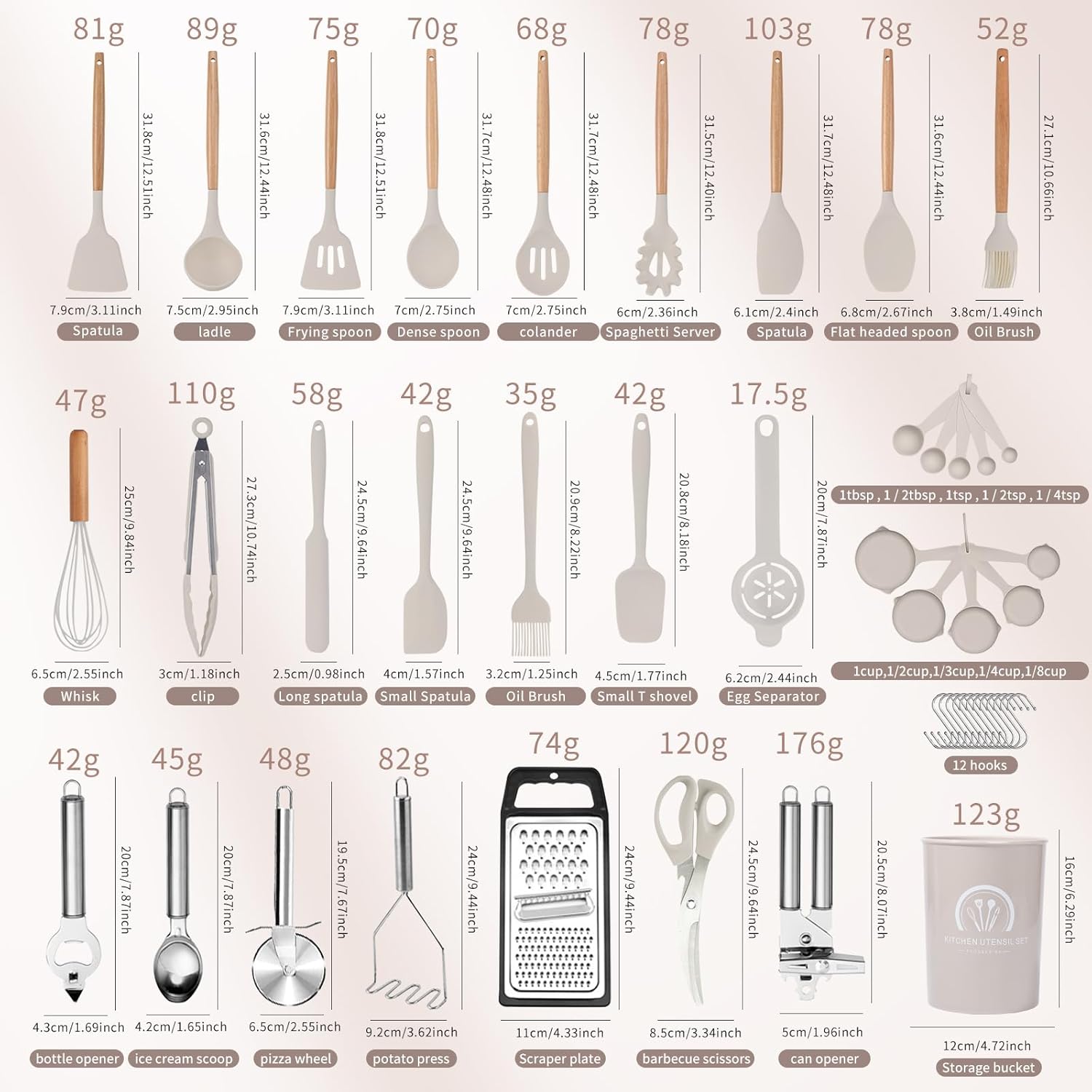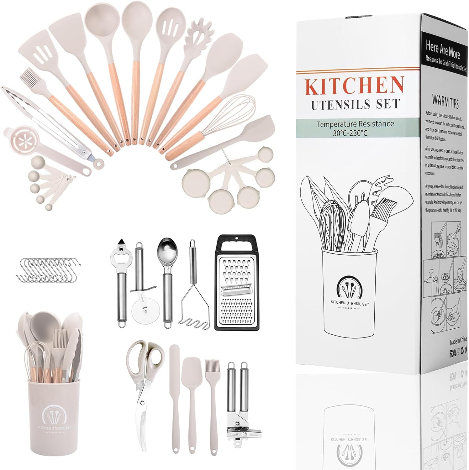 š„ćUpgraded 46PCs Kitchen Utensils Setć Anti Scalding Protect your Hand from Burning, 46 Professional Silicon Kitchen Utensil Set Includes Flexible Spatula, Soup Ladle,Serving Spoons Pasta Server, Spatula Turner,Tongs,Egg Speparator,Pizza Wheel,Bottle Opener,Potato Press,Scraper Plate,12 Hooks and so on. Meet Your All Kinds of Kitchen Needs.