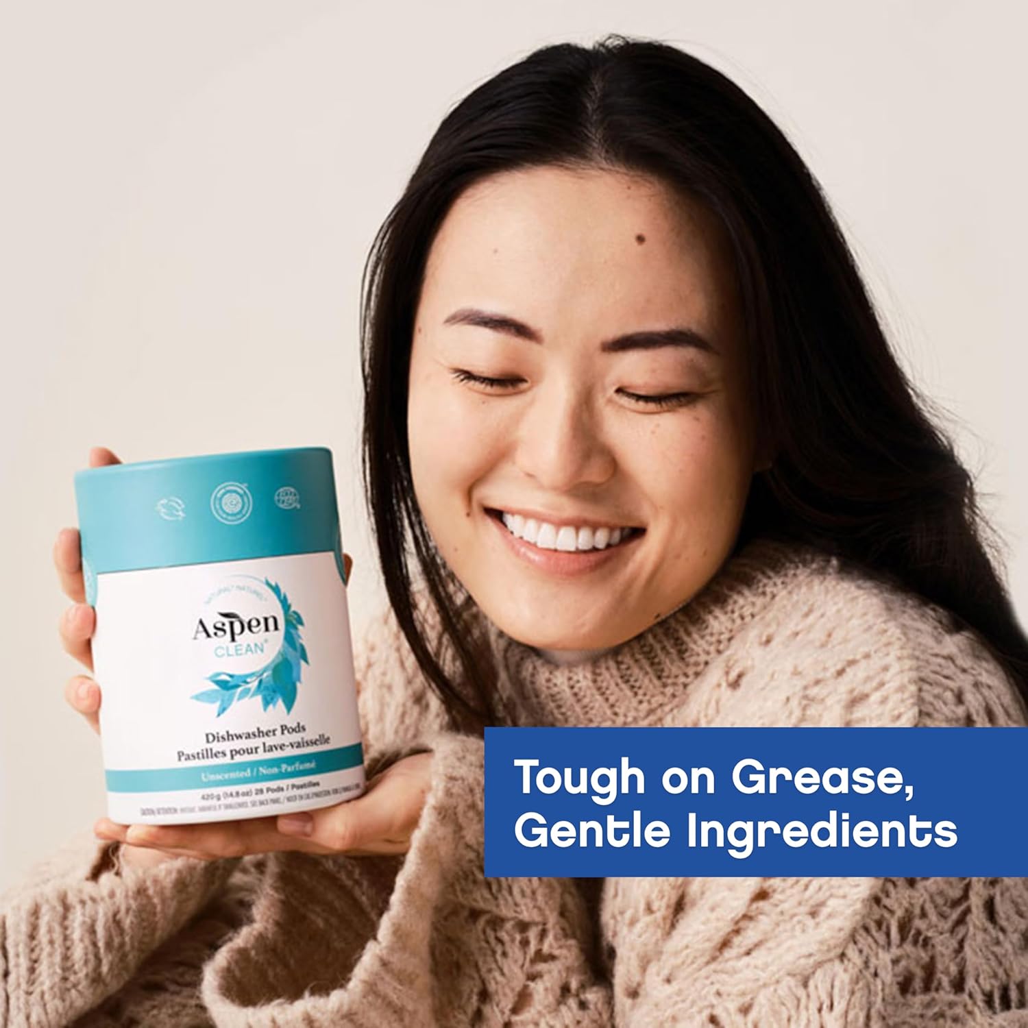AspenClean Unscented Dishwasher Pods , 28 Count, Zero Plastic, Plant-Based Natural Dishwasher Detergent Pacs – Powerful Eco-Friendly, Pet & Baby Safe, EWG Verified™ & A Rated