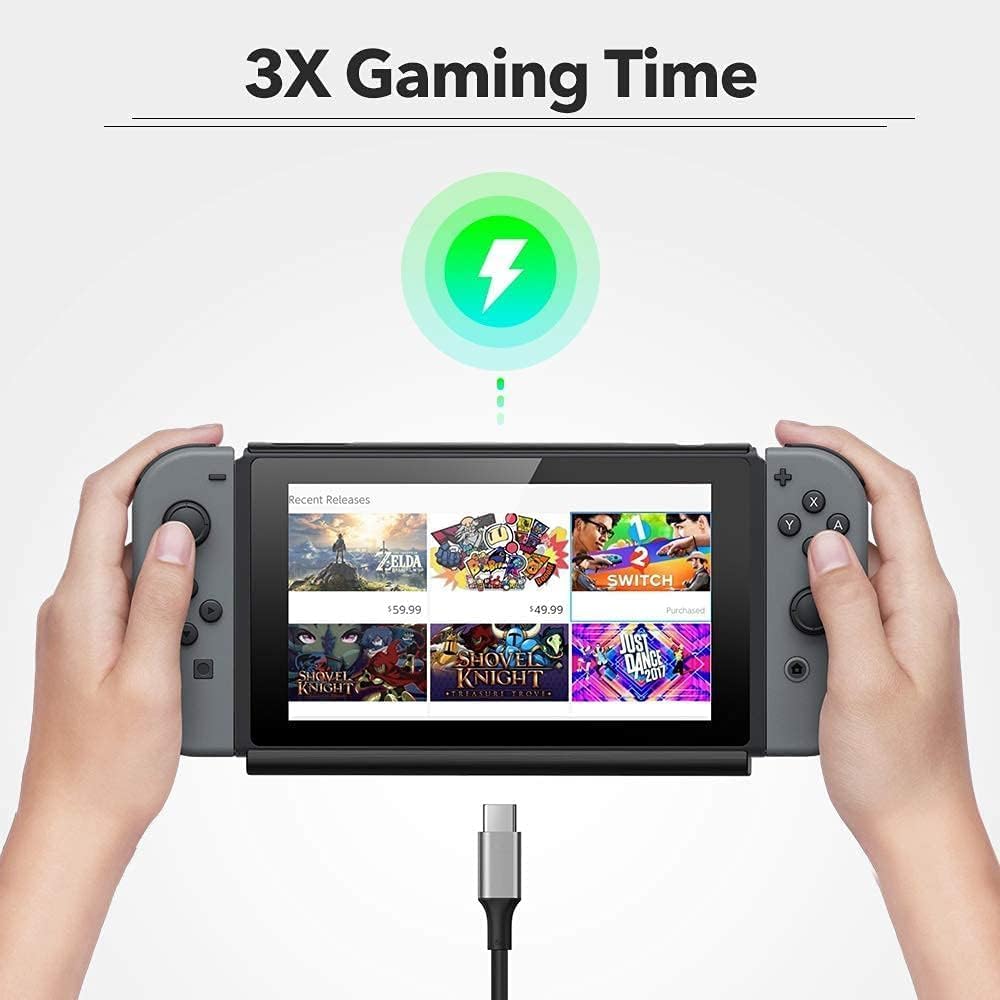 【Faster Charging & Comprehensive Protection】Greatly shorten the charging time and enable you to play Nintendo games while charging. Multiprotection safety system combines high-voltage protection, current regulation, temperature control, and more to keep you and your devices safe.