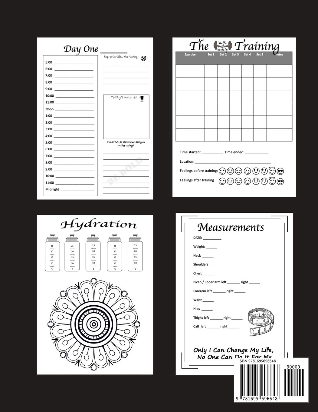 40 day fitness and nutrition tracker for a 40 day challenge that includes pages for weight training, water intake, meal planning and mandala coloring pages. If you are doing an online challenge and you want a way to track your weight loss progress or want to keep track of your gains in the gym.Everyone is into fitness and 40 days is enough time to make sure you have your mind right and your fitness together.
