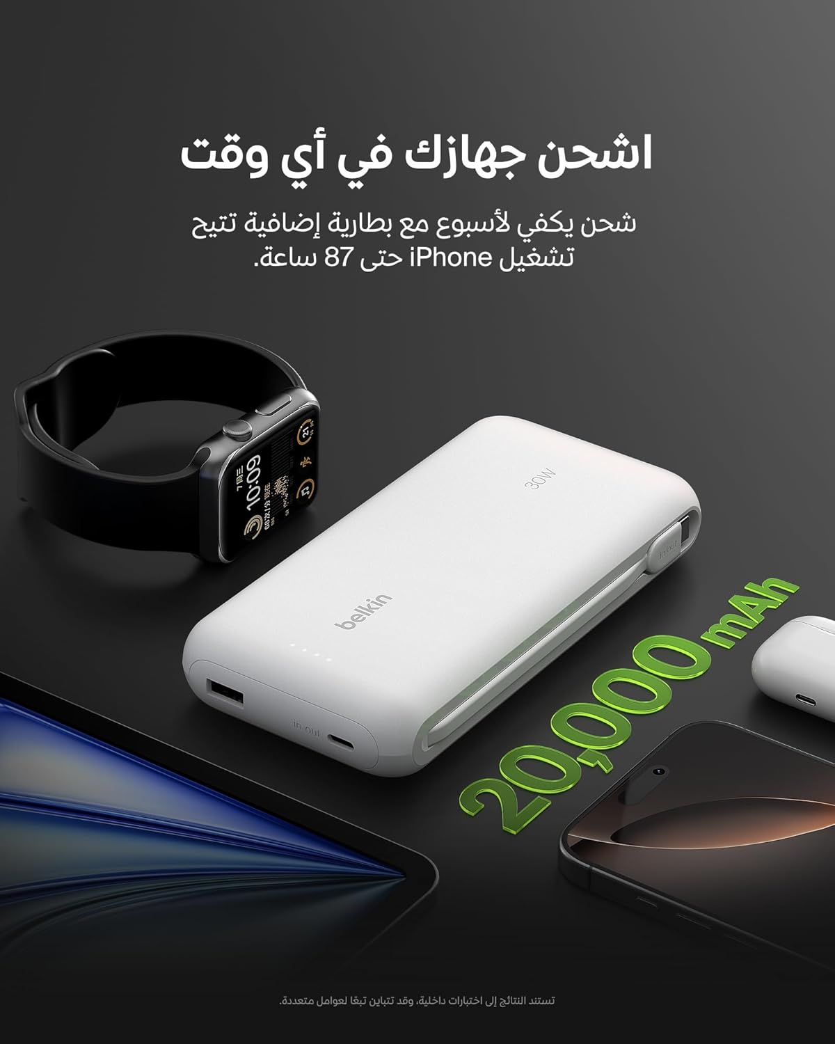 30W OUTPUT LETS YOU FAST CHARGE SMARTPHONES & TABLETS: This Belkin portable charger has a powerful 30W output, allowing you to fast charge your smartphones and tablets. This output even allows you to charge a MacBook Air up to 30W.