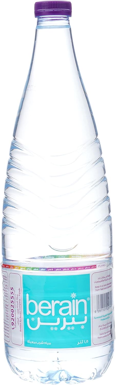 Berain Mineral and healthy water is mobilized from natural groundwater wells. It is purified at several stages of the filtration process and characterized by its natural stability. This unique flask is simply more water-packed. refreshing taste. It comes in a 1.5 litre bottle.