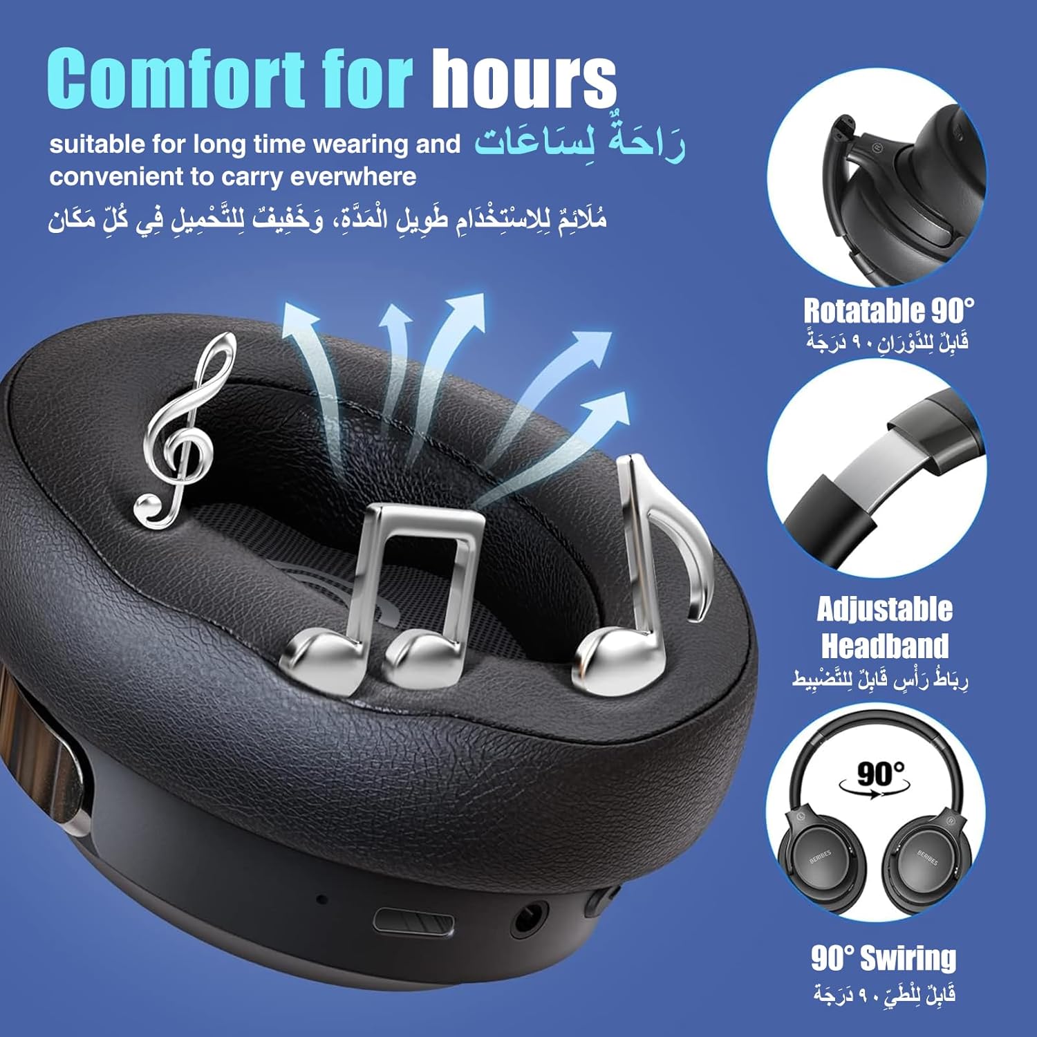 【6 Custom Sound Modes】Experience rich, powerful sound with BERIBES wireless headphones ! Featuring dual 40mm drivers and 6 EQ modes, these over ear headphones let you customize the sound for every genre, perfect for bass heavy Arabic music or clear vocal tracks.
