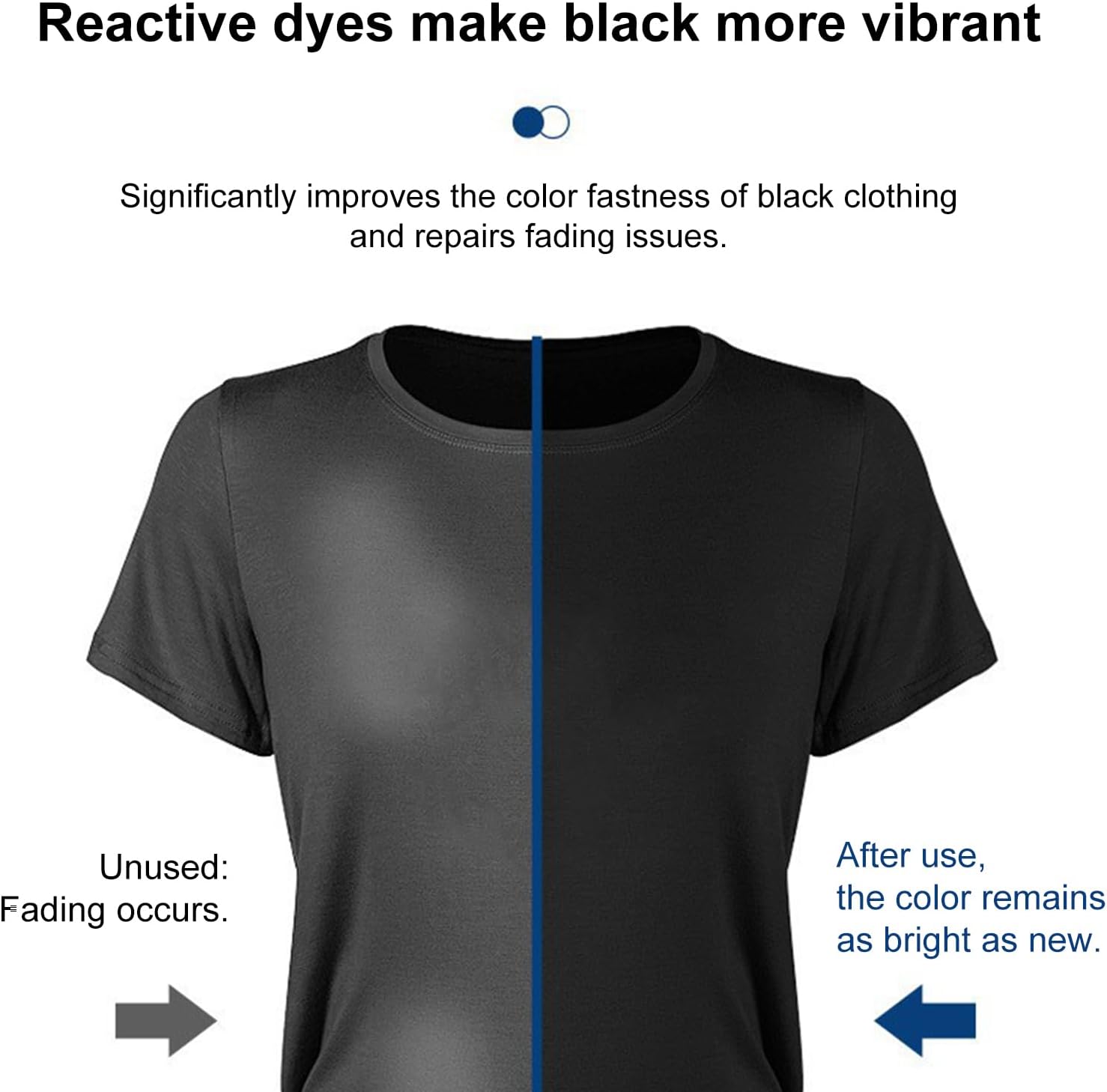 Blackening effect: Make faded black clothes look deep and rich again.