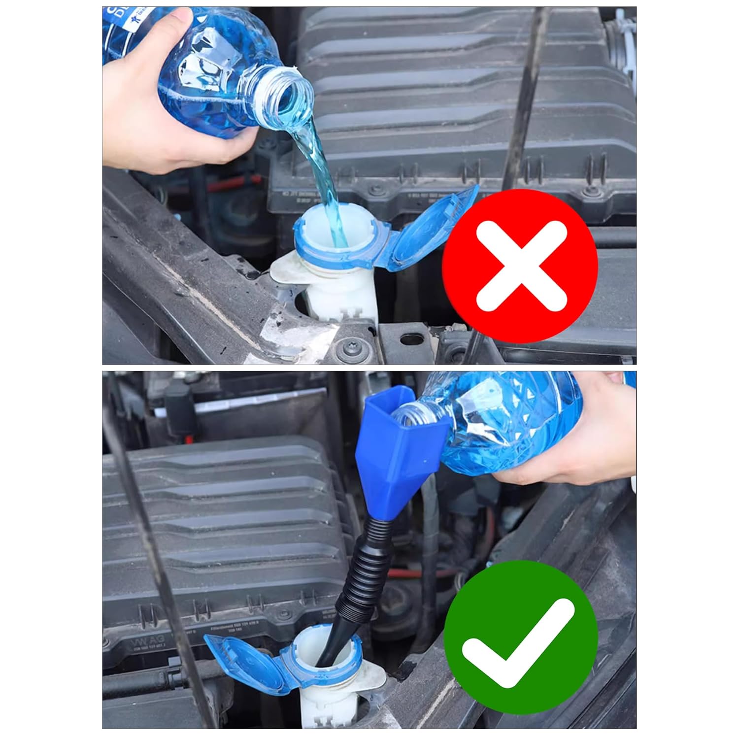 Blue Flexible Automotive Oil Funnel Tube – Hands-Free Design for Oil Change, Coolant Fill, and Car Maintenance