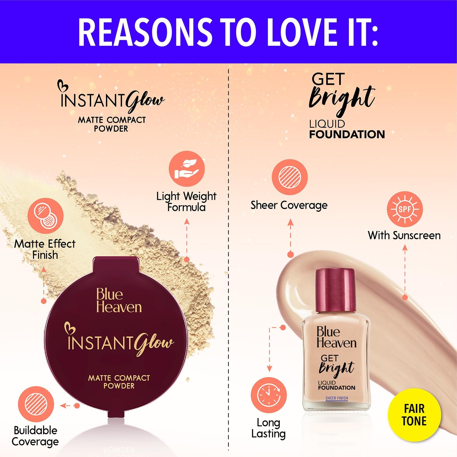 Blue heaven makeup kit included products that are suitable for various skin tones and types, ensuring versatility and inclusivity.