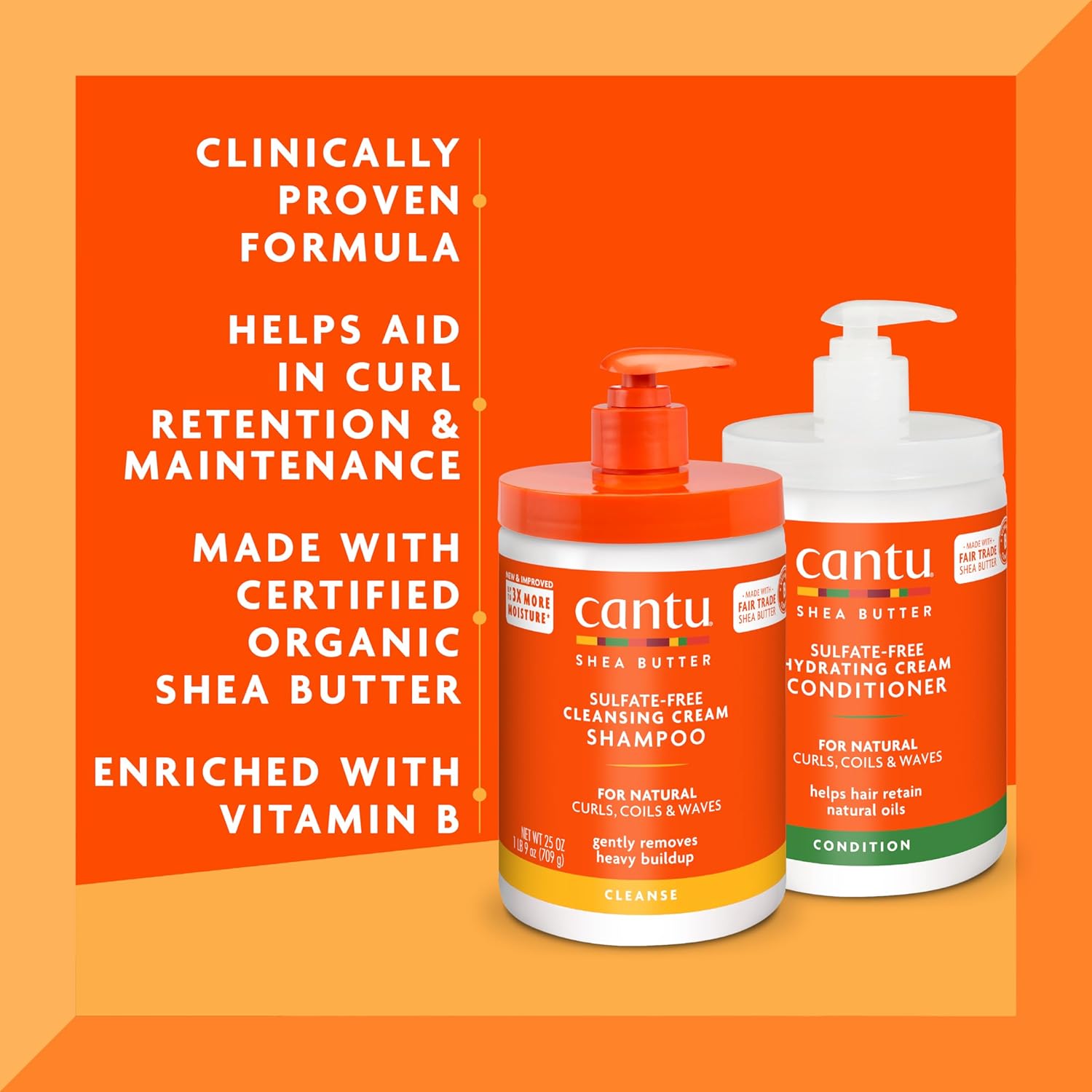 Do wash day the right way with Cantu Shea Butter for Natural Hair Sulfate-Free Cleansing Cream Shampoo and Cantu Shea Butter for Natural Hair Sulfate-Free Hydrating Cream Conditioner! Crafted with an award-winning blend of pure shea butter and essential oils, the Cleansing Cream Shampoo produces a rich lather that conditions as it cleanses, gently removing product buildup without drying out hair. For best results, apply a quarter-sized amount to wet hair and work into a lather. Massage into the scalp, and rinse. Repeat as needed. For best results, follow up with the Hydrating Cream Conditioner to help protect curls against breakage and split ends for stronger, healthier hair for best results and enjoy ultimate hydration and complete conditioning that delivers an added layer of moisture after shampooing. Enjoy ultimate cleansing, hydration and complete conditioning, formulated without the use of harsh ingredients like mineral oil, drying alcohol, sulfates, parabens, silicones, phthalates, paraffin, or propylene. Since the beginning, you’ve pushed us to advance skin and hair science to honor your locs, your curls, your waves, your braids, your natural. At Cantu, we support your journey with care and we celebrate all the styles you rock!