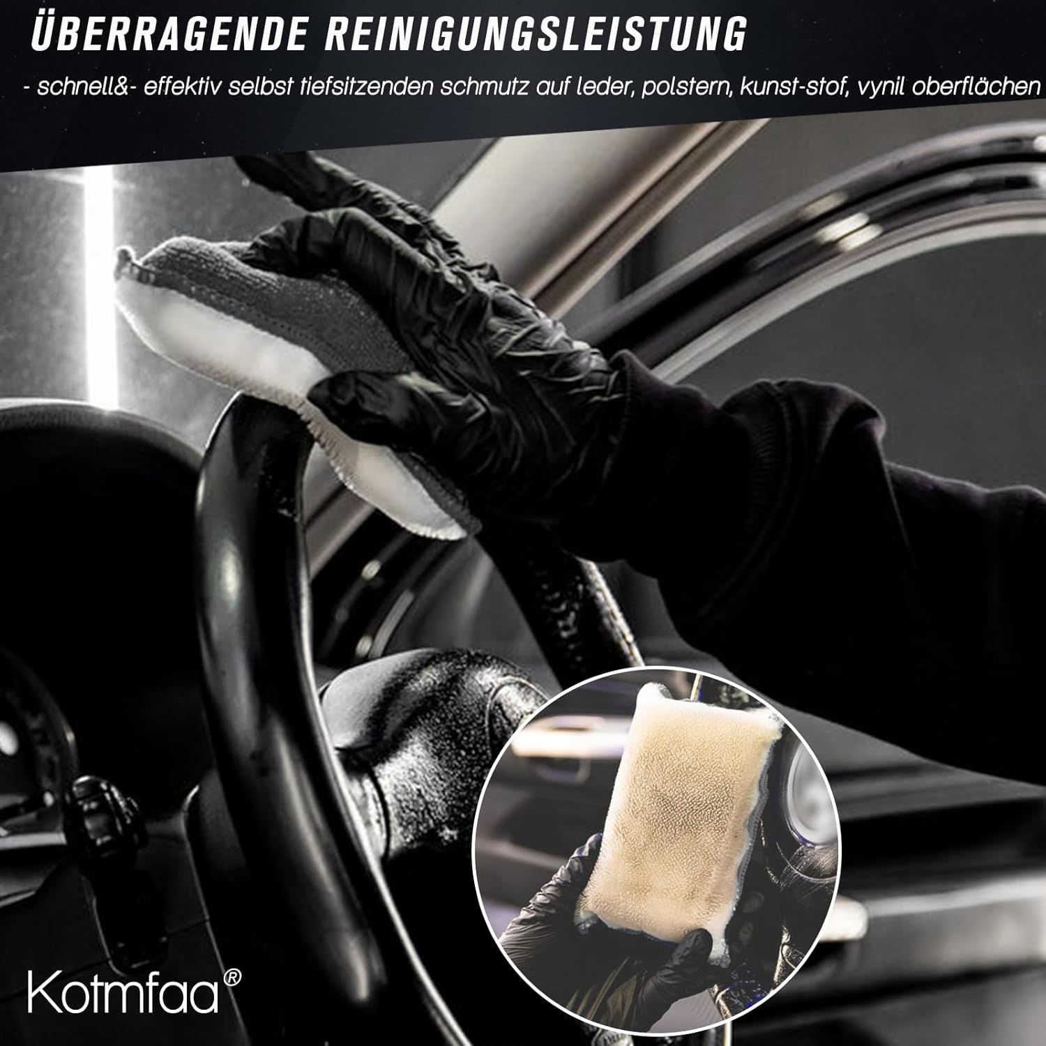Interior cleaning pads – the Kotmfaa interior pads car is a microfibre wash sponge made for car interior care, fine plastic fibres with the suction power of a car sponge and the softness of microfibre cleaning cloths. Scrub on both sides, white colour as dirt indicator, so cleaning sponges is smart cleaning – faster and easier. Your reliable companion for professional cockpit cleaning and care