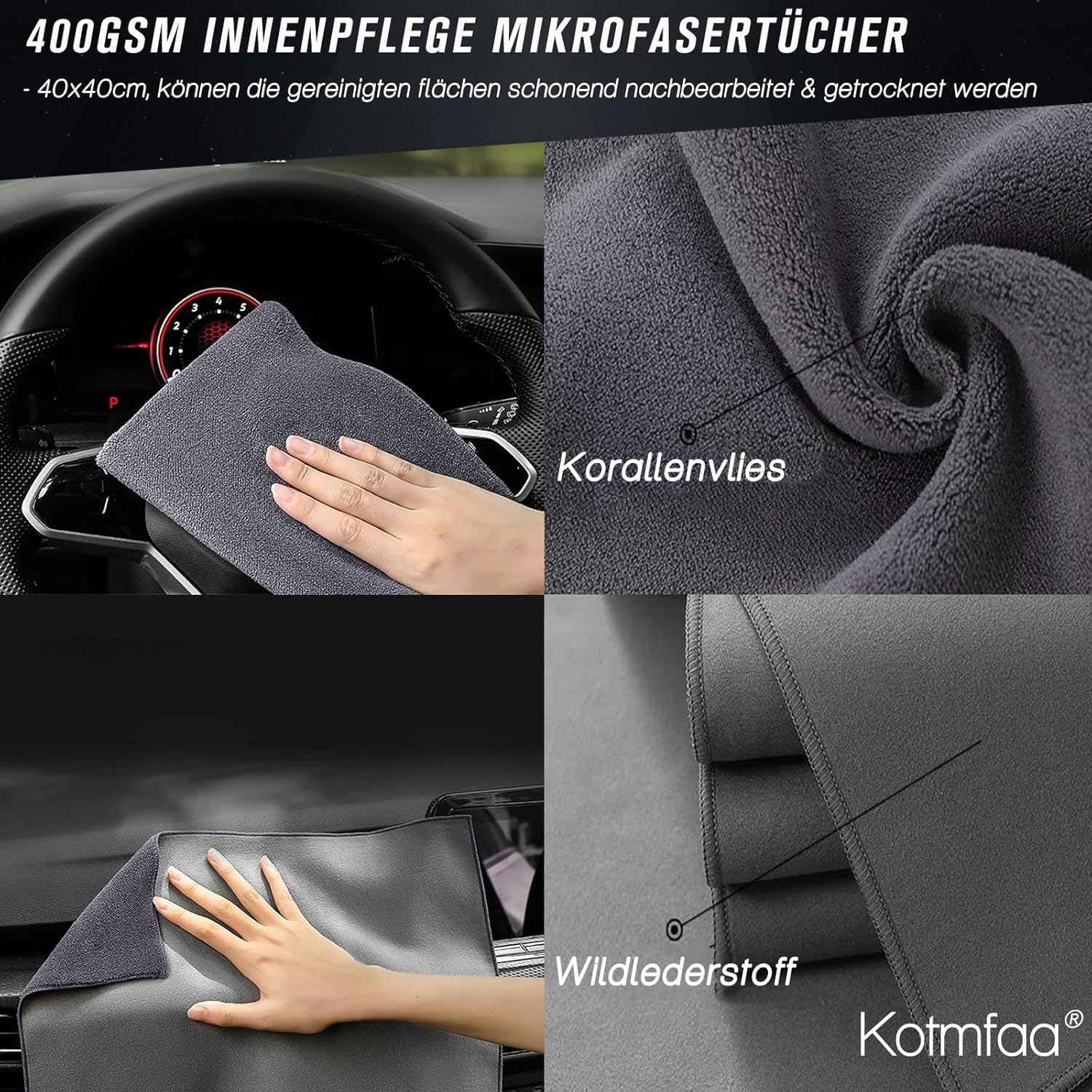 Gentle and gentle interior care – the included 40 x 40 cm / 400 gsm microfibre cloths can be gently reprocessed and dried, the soft grey side of the car interior cleaning pads can be applied evenly for car wax, car polish or polishing paste, for a clean flawless car interior in no time at all