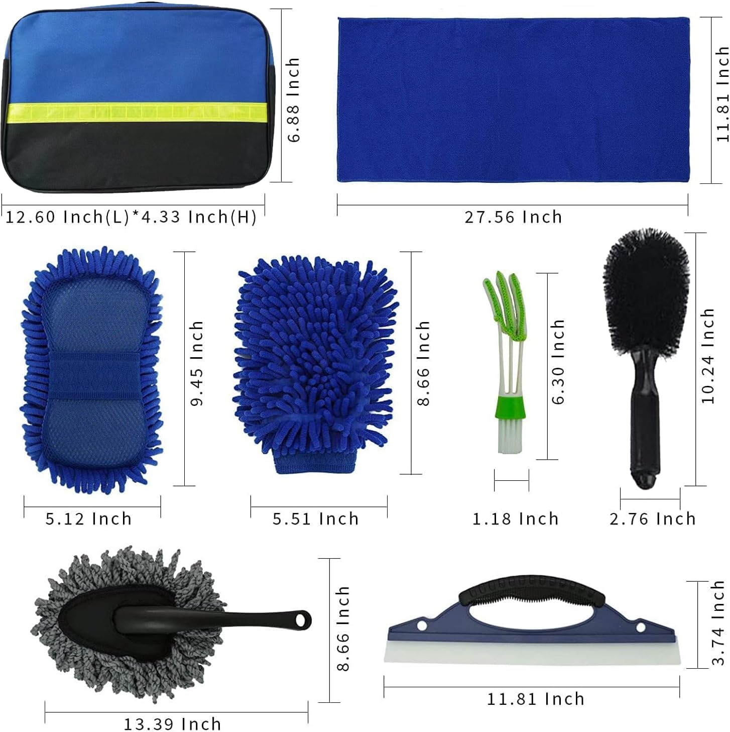 Car Wash Cleaning Tools Kit Car Detailing Set with Bag,Wash Mitt Sponge Towels Tire Brush Window Scraper Duster Complete Interior Car Care Kit