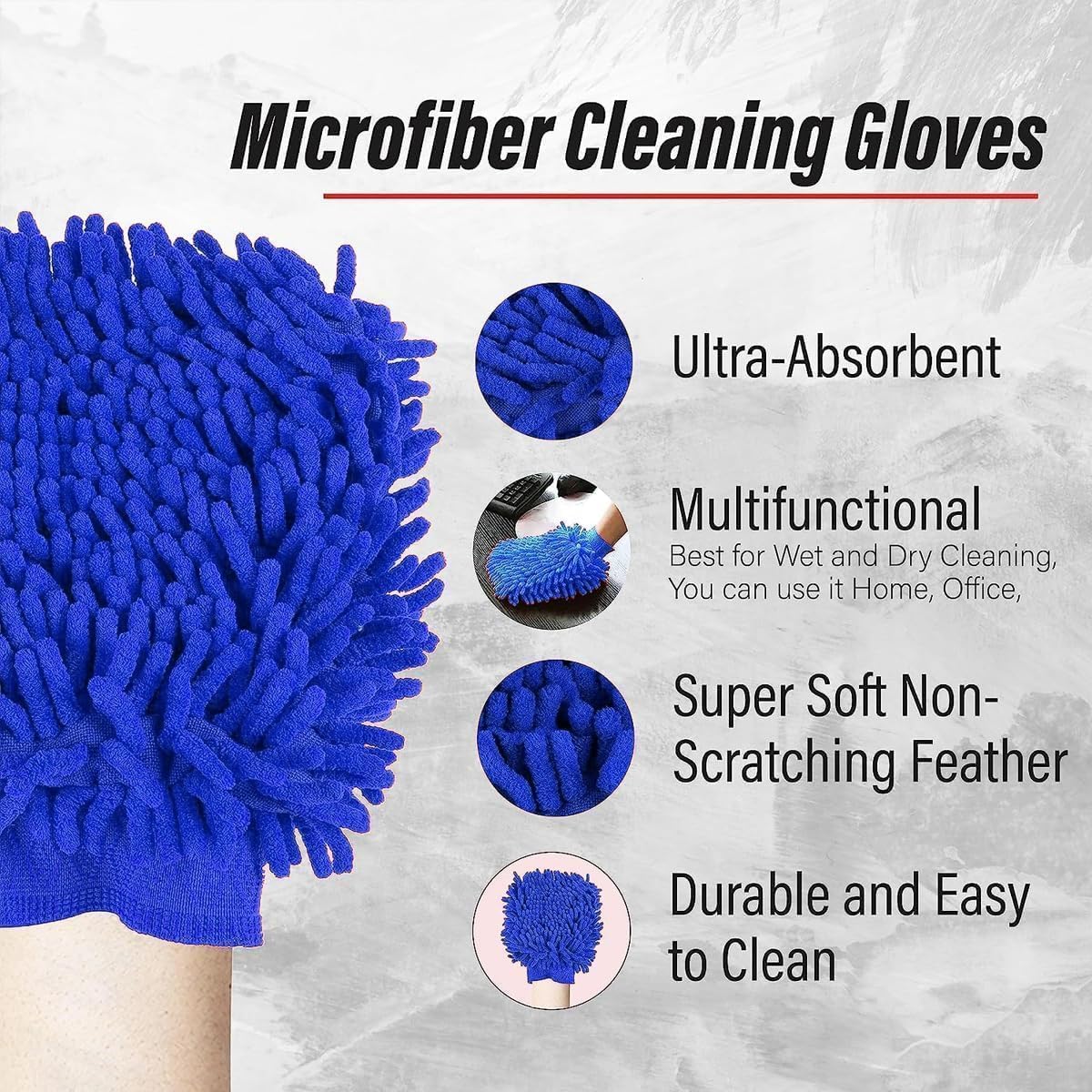𝐒𝐜𝐫𝐚𝐭𝐜𝐡-𝐅𝐫𝐞𝐞 𝐂𝐥𝐞𝐚𝐧𝐢𝐧𝐠 𝐆𝐥𝐨𝐯𝐞: Microfiber chenille glove cleans gently without damaging paint or delicate exterior parts.
