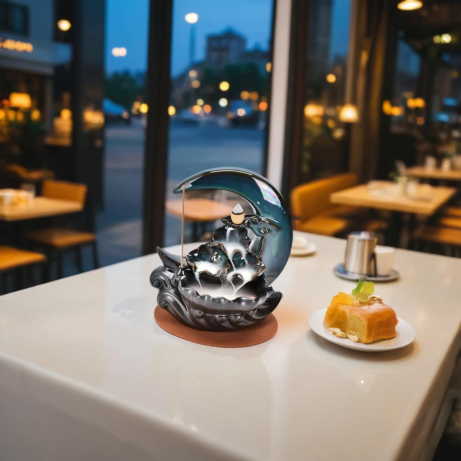 Duomama Enchanting Moon Shape Backflow Incense Burner – Tranquil Blue Moon Design