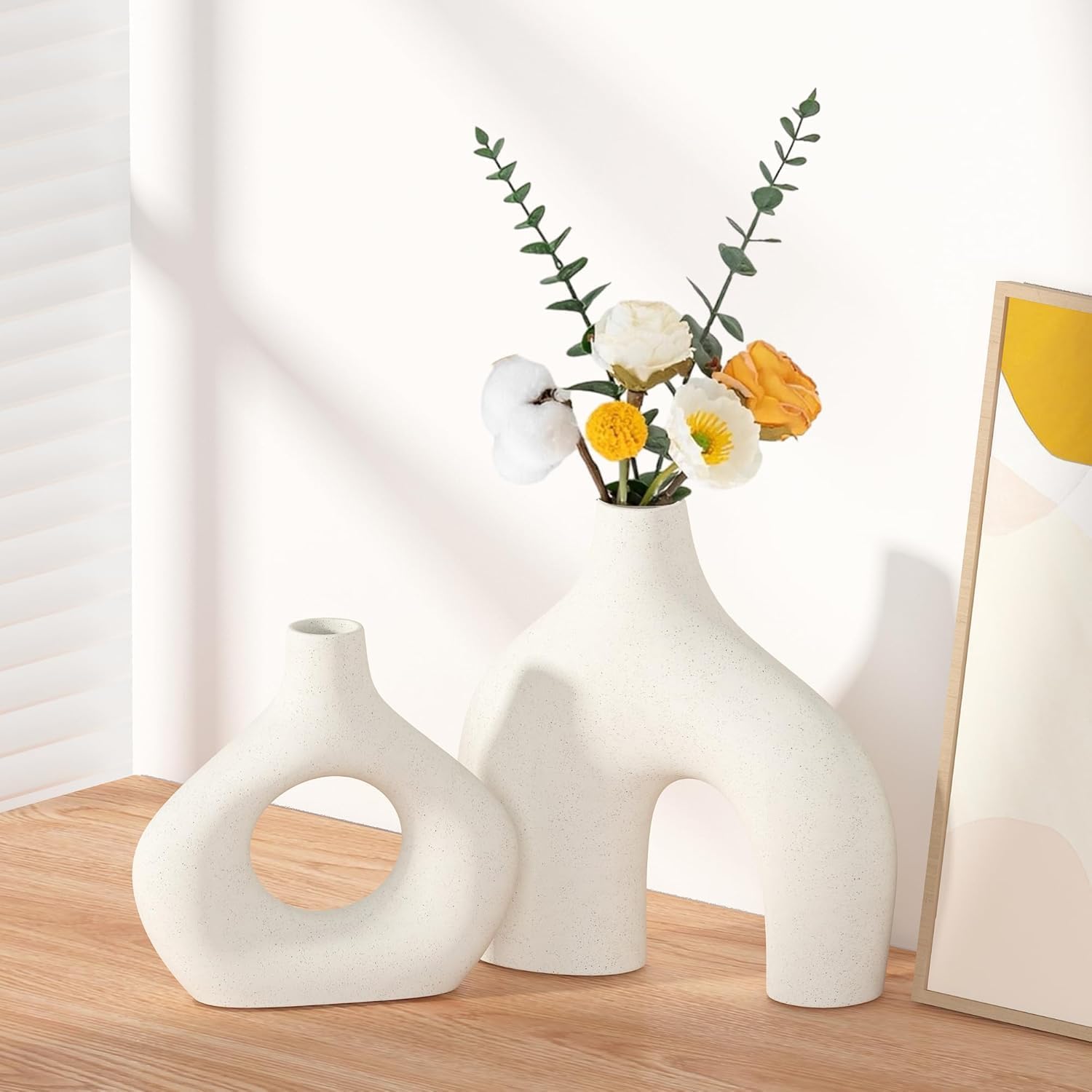 Unique White Ceramic Vase: The hollow and irregular design of the white ceramic vases add a modern, minimalist style to your home decor. The unique donut shape makes the vases romantic and stylish. Let our beautiful ceramic vases become part of your home decor collection.