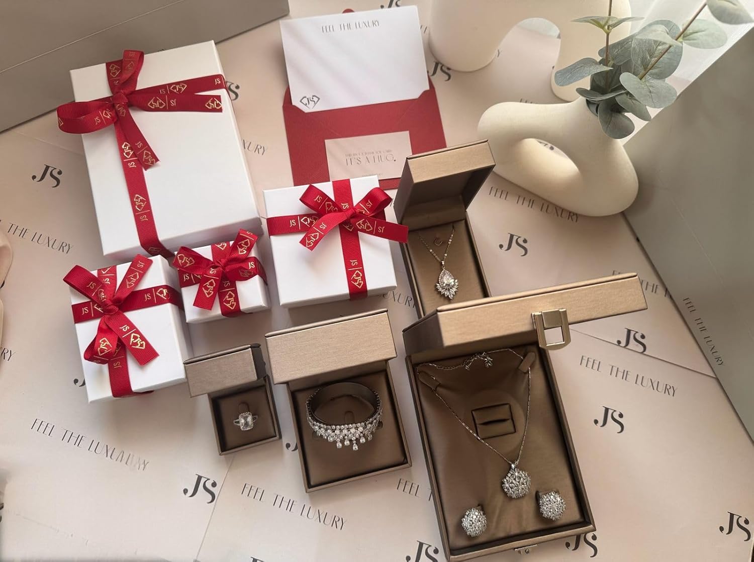 Chanzelizi: · Set (Necklace + Earring + Bracelet) 18K Gold Plated with Premium Swiss Synthetic Diamond “Zircon”.