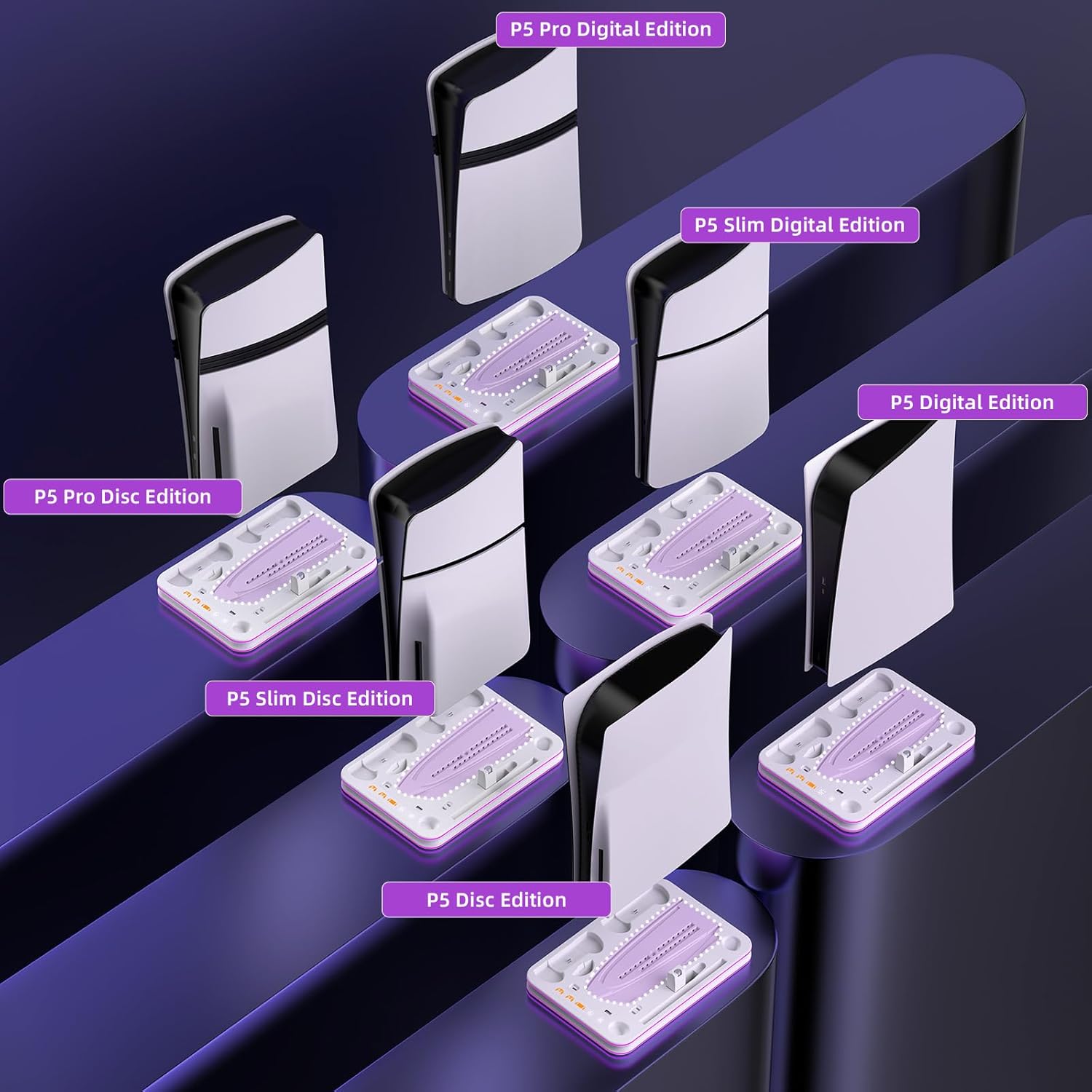 EFFICIENT COOLING FAN SYSTEM – We use the quietest and more concentrated turbine fan to add cooling aids for PS5 console. The silent high-speed cooling fan can achieve better air circulation. Lowering the temperature of the PS5 console can bring a more stable gaming experience and extend the lifespan of the gaming console.