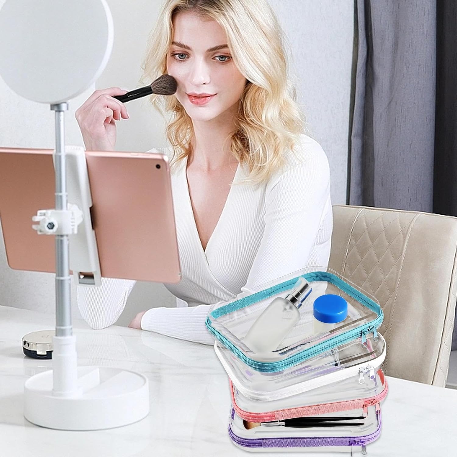 Functional Accessory Storage: These clear zipper bags assure efficient space management through a multi-size set, supporting cosmetic and tech accessory storage with color-coded and visual identification advantages