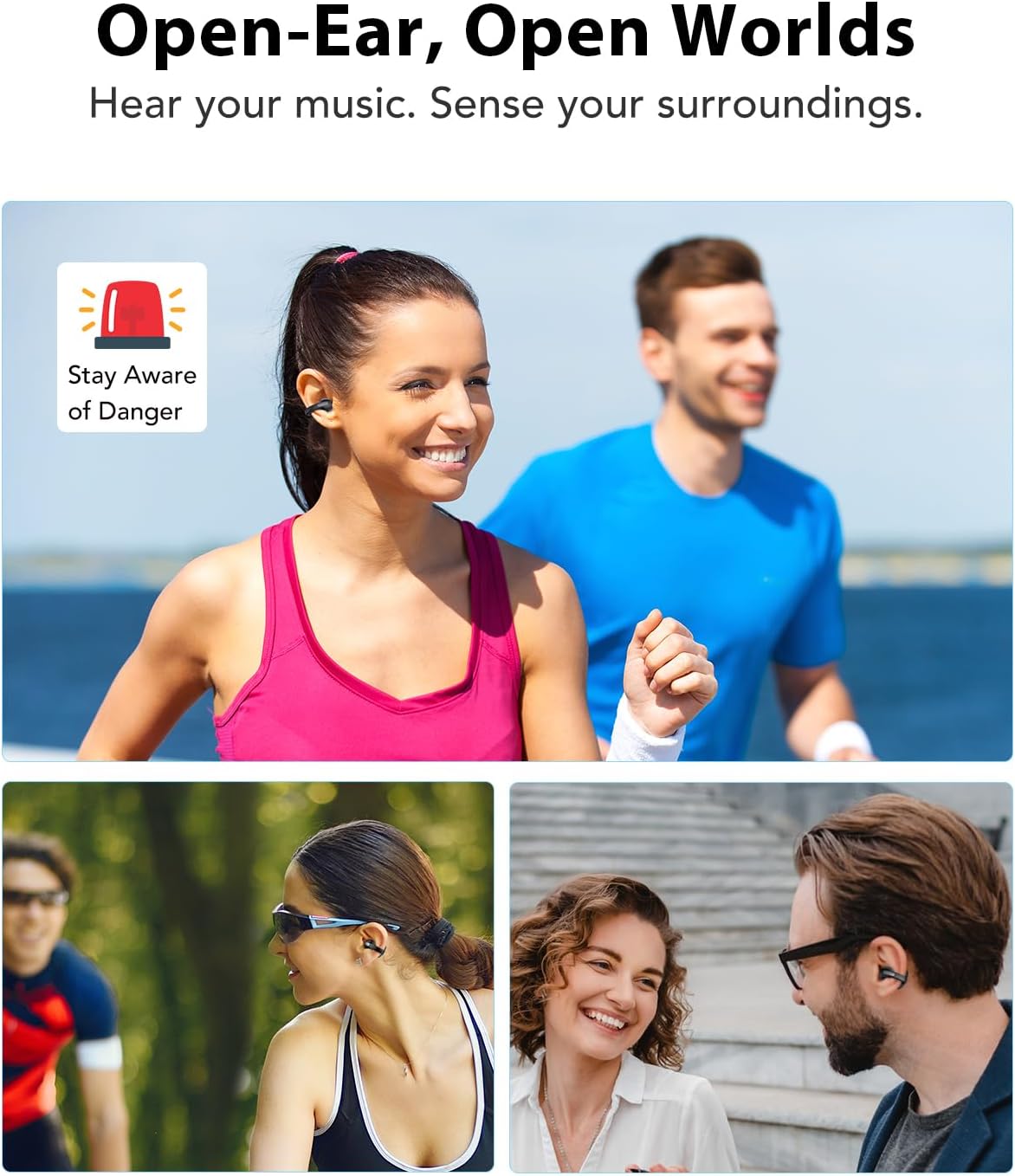 【Awareness & Connectivity】Stay connected to both your audio and your surroundings. These earbuds offer improved safety and a more stable connection than traditional wireless models.