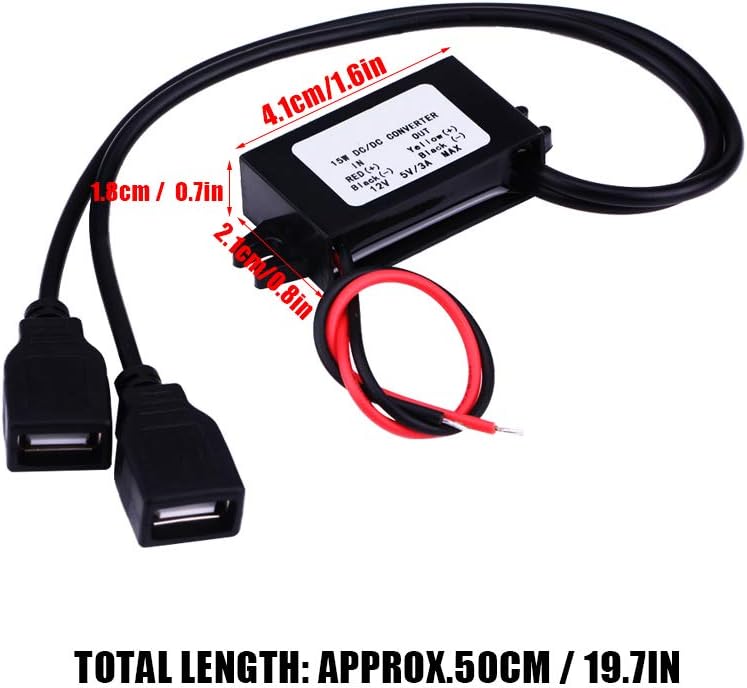 HIGH CONVERSION RATE: DC to DC converter 12V to 5V is designed with dual USB charging port, 2 devices can be charged at the same time, using imported integrated switch ultra-thin voltage regulator module, the conversion rate is over 96%.